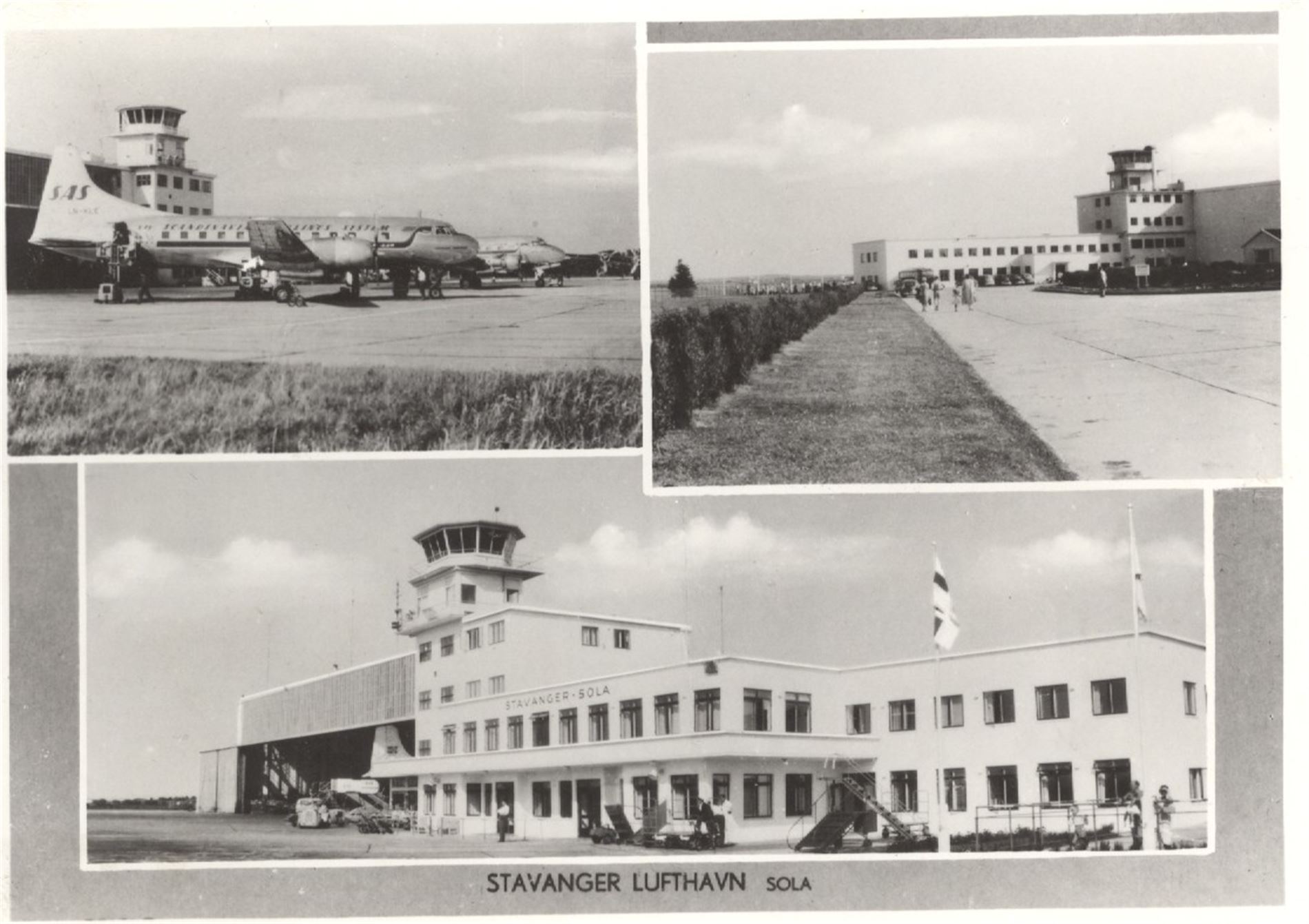 Stavanger lufthavn Sola storf. S/H (iHarstadkort, 3-delt motiv). Pent st. Stavanger Utv. 25-6-62