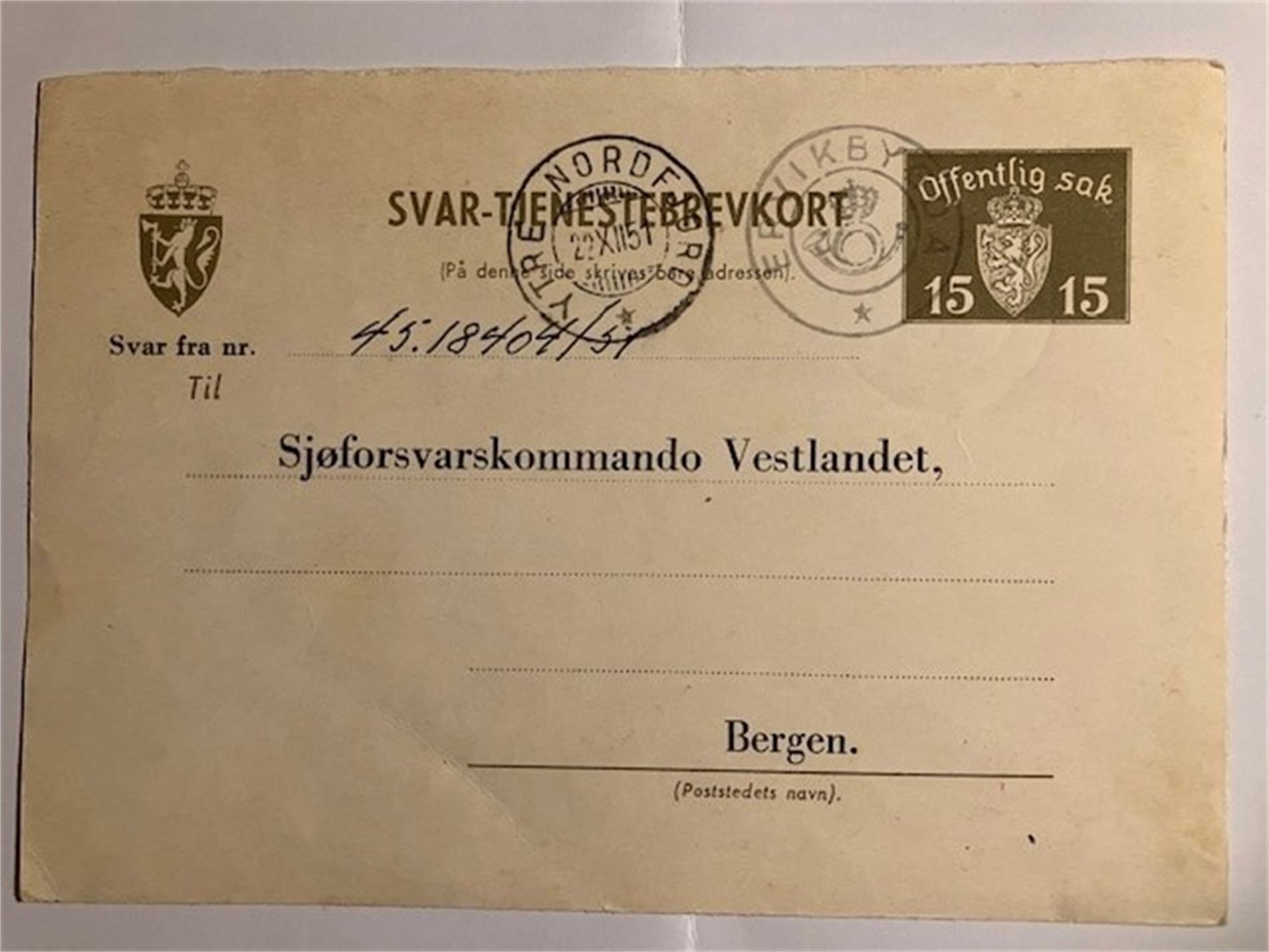 Ervikbygda med sidestmpl. Ytre Nordfjord i 151 på Tjenestebrevkort