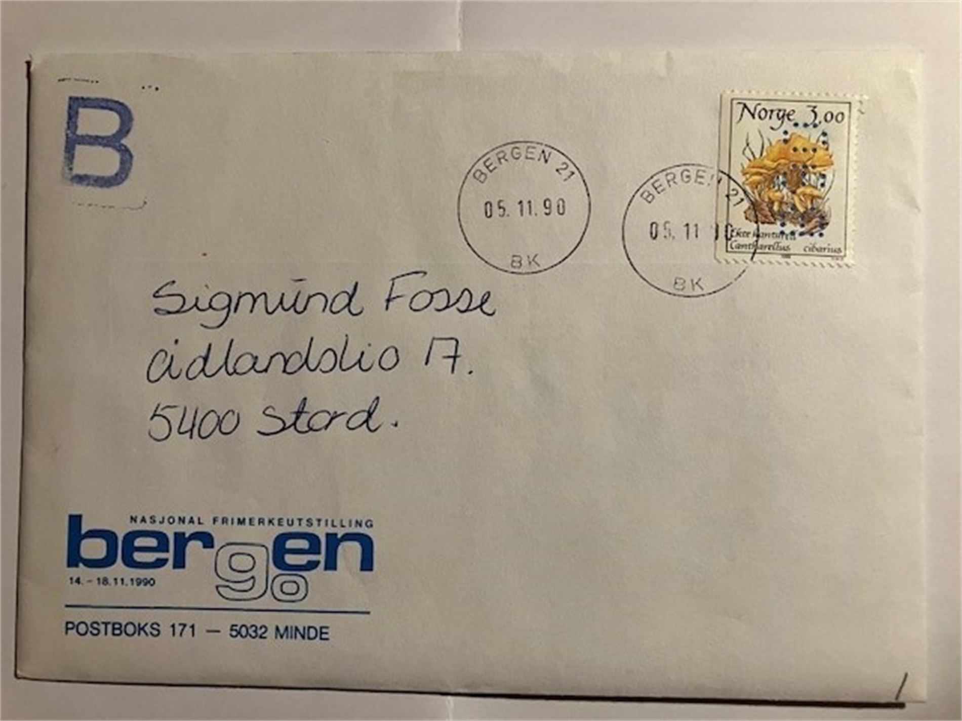 Pent brev stmpl. Bergen i 1990.