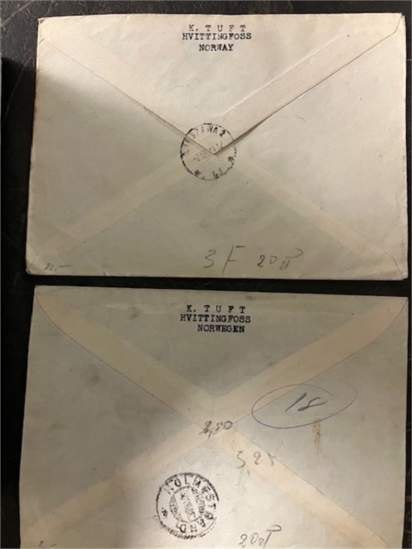 2 rek-brev stmpl. Hvittingfoss i hhv 1948 og 1949.