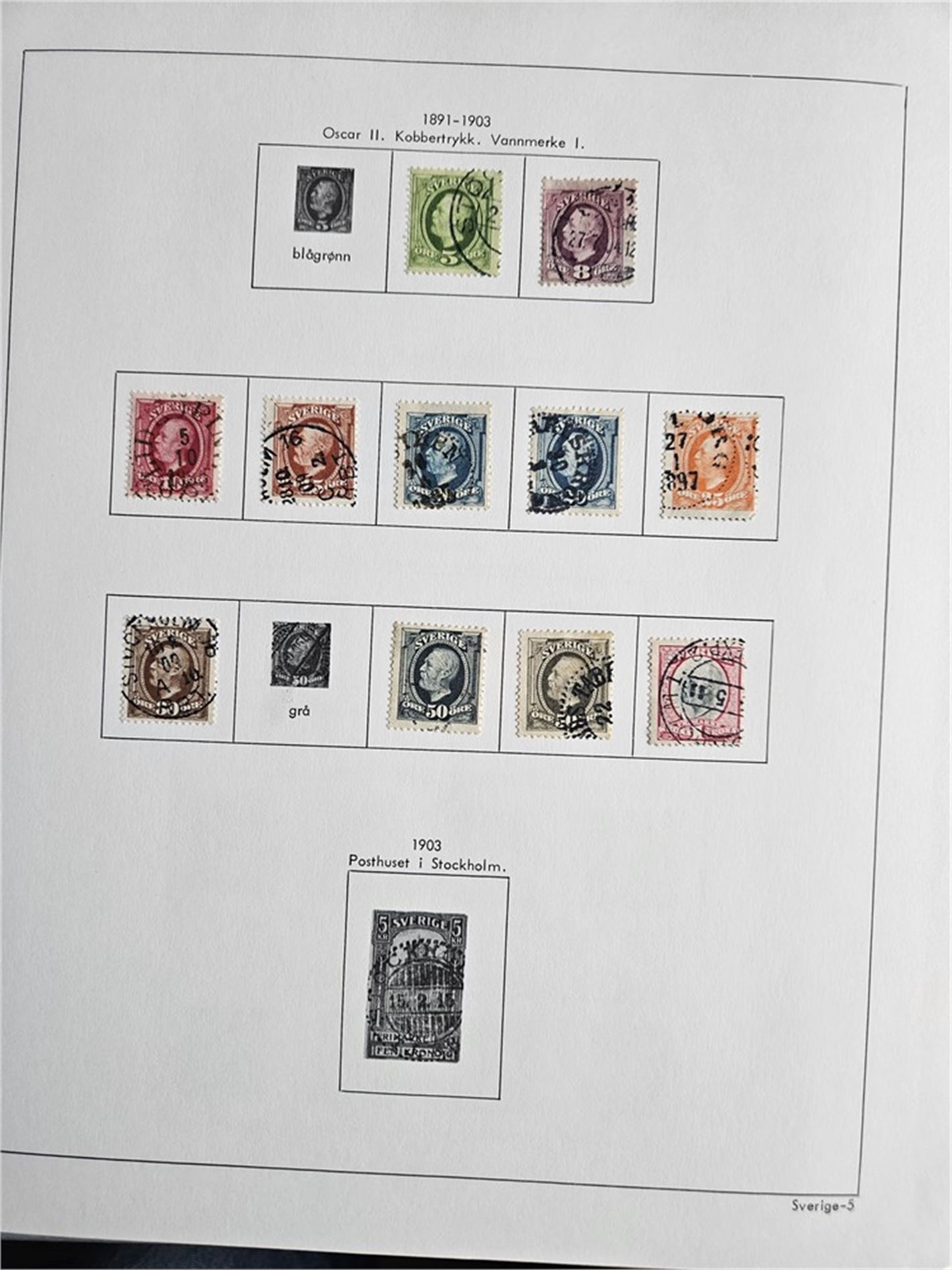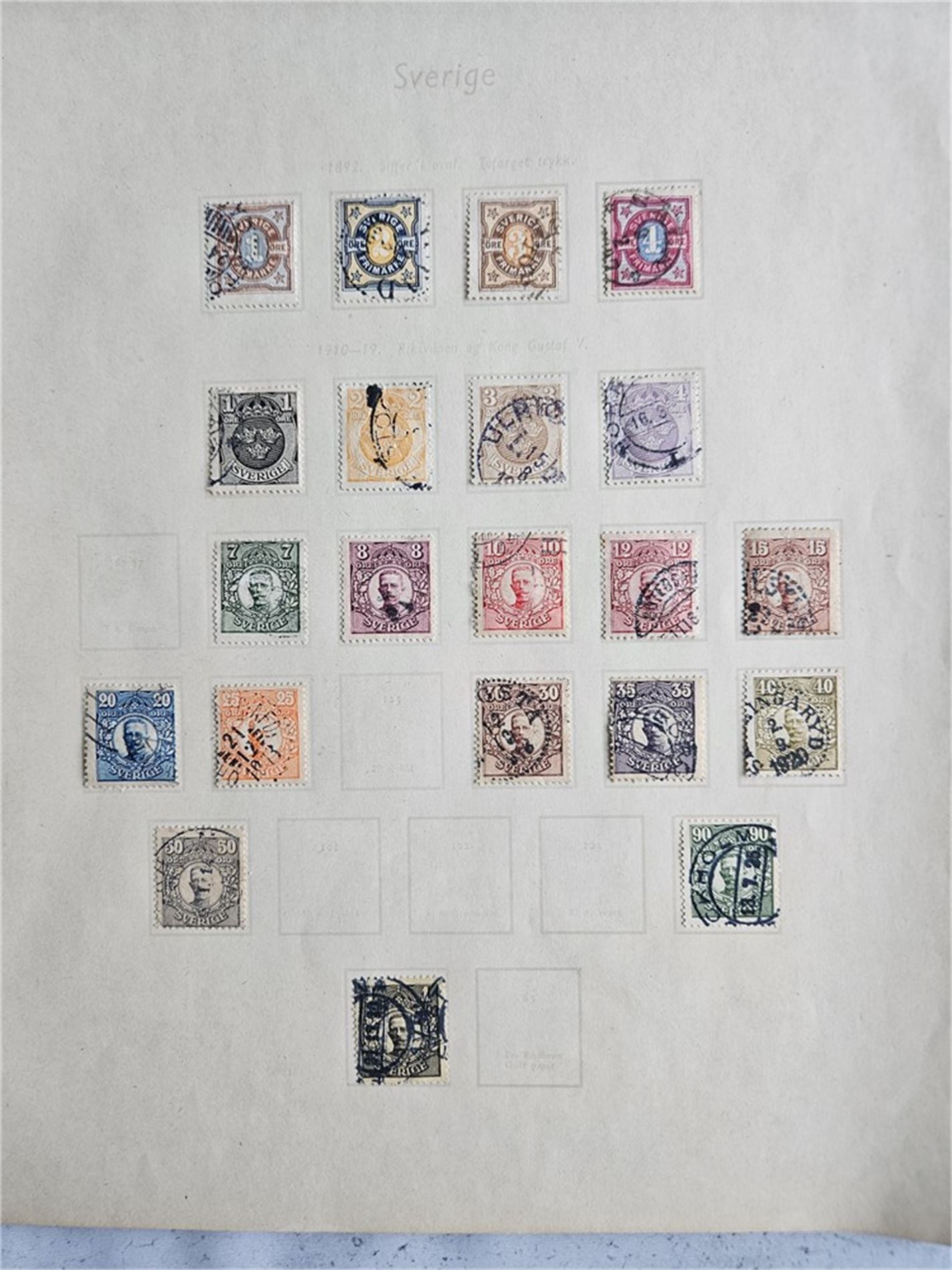 3 stk. Sverige-samlingar: 1 - Sverige-samling 1890-1945 - mye vanlige merker. 2 - Sverige-samling - tynt besatt. Perioden 1890 - 1990. inkludert postfriske årssett 1992 og 1993. 3 - Sverige-samling i 2 album, Noe bra i begynnelsen, men tynt framover.