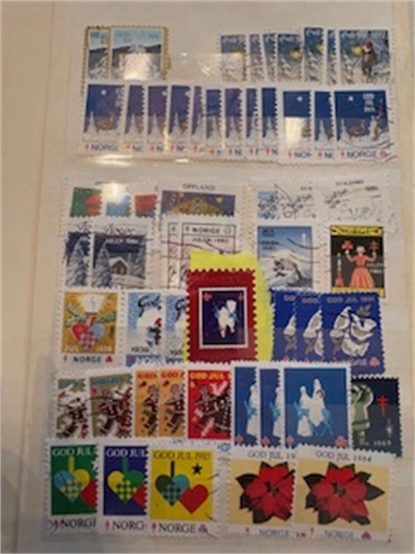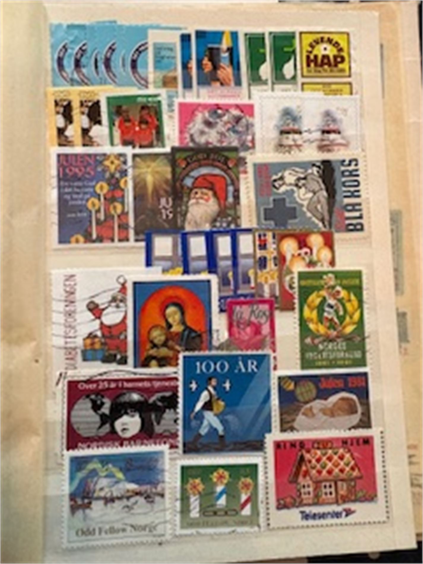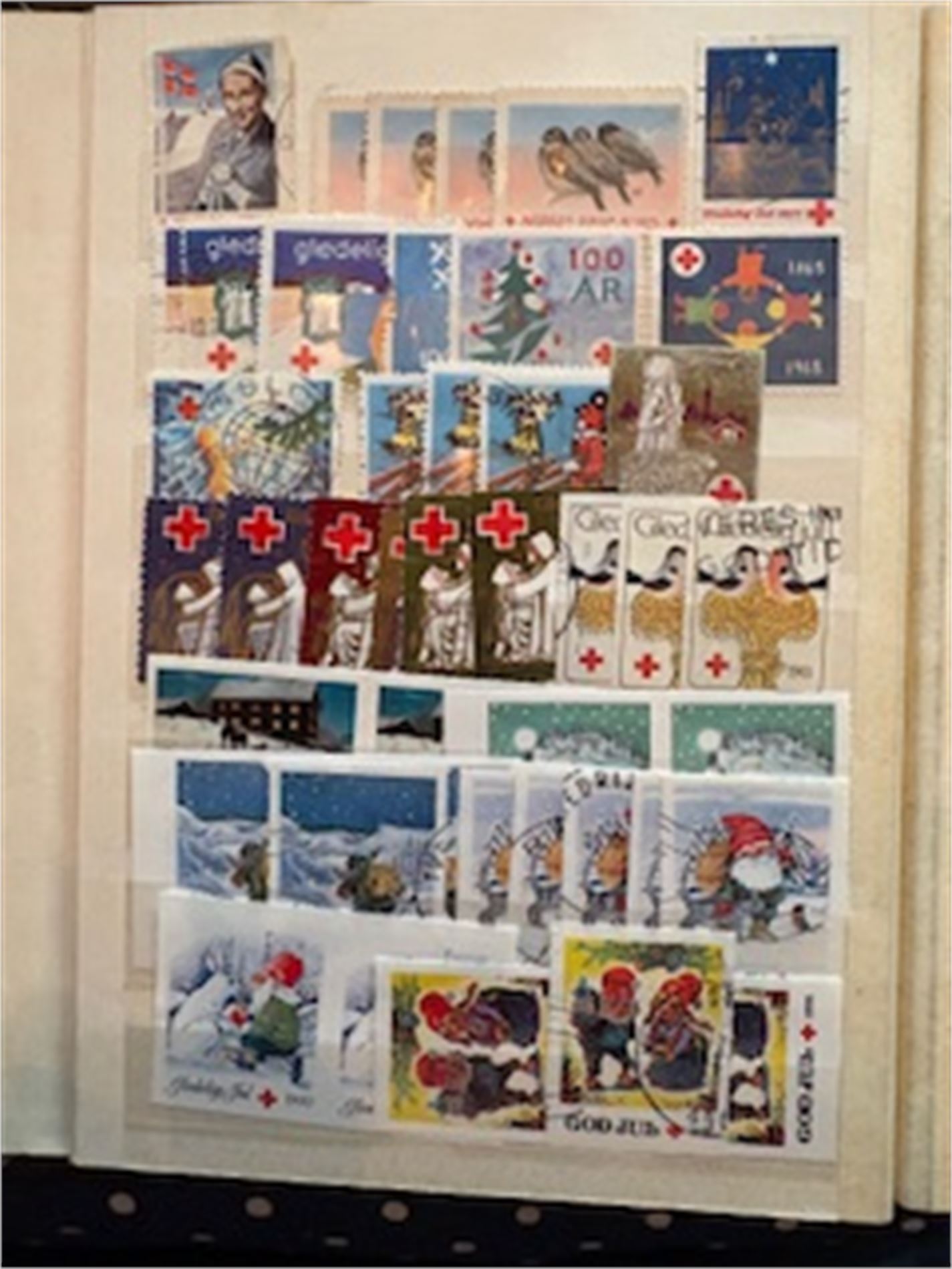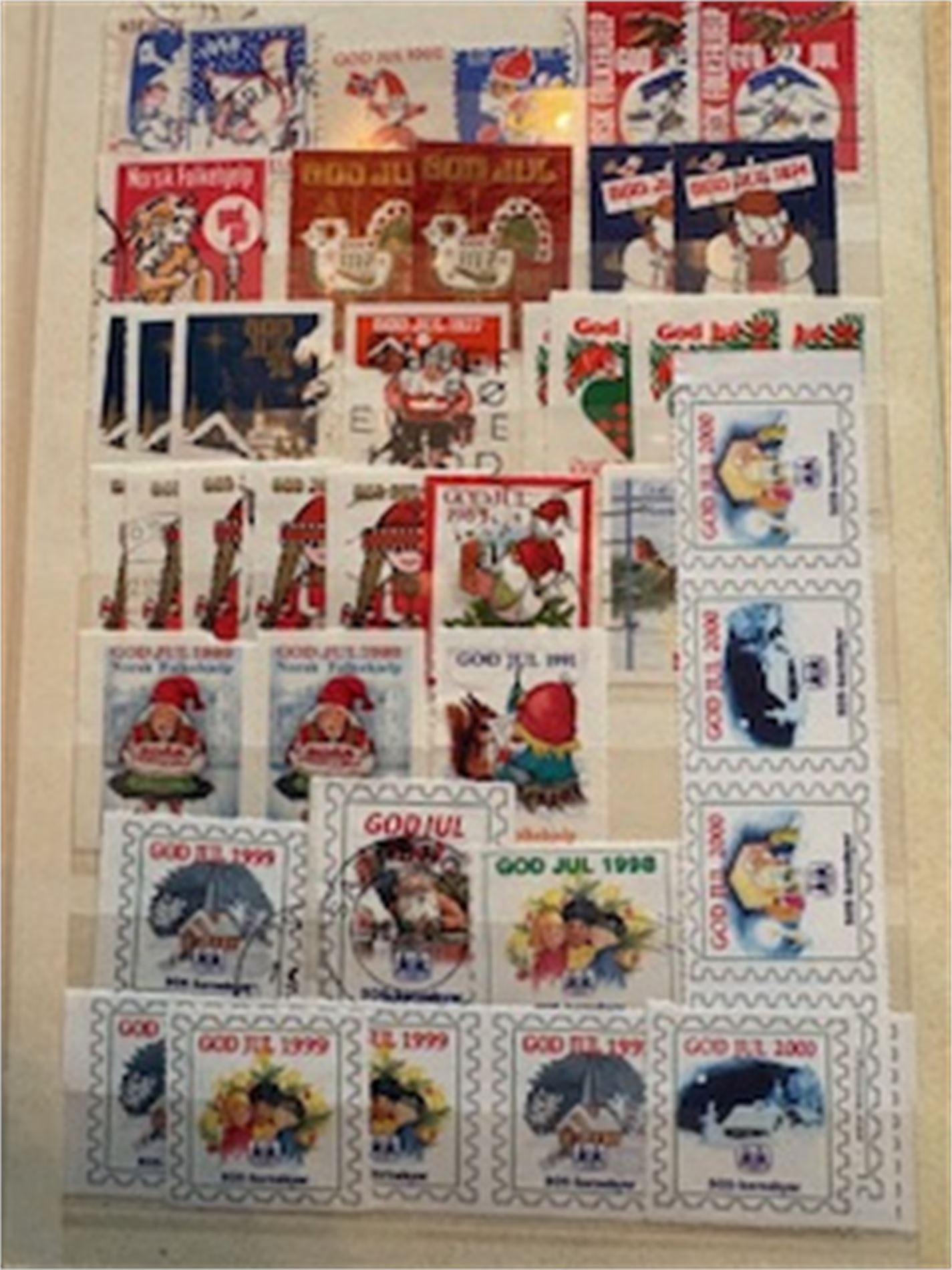 16 siders innstikksbok fylt opp med danske julemerker. Ikke alle sider er avbildet.