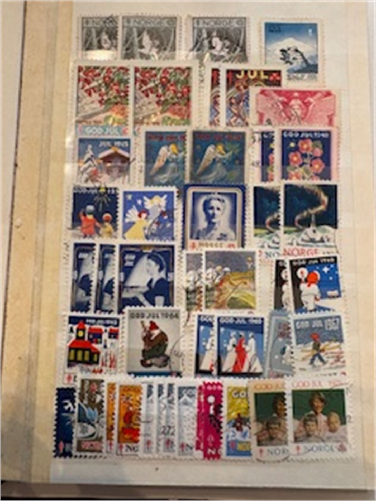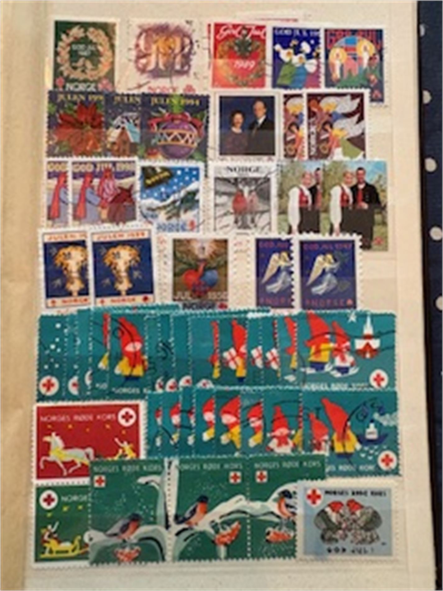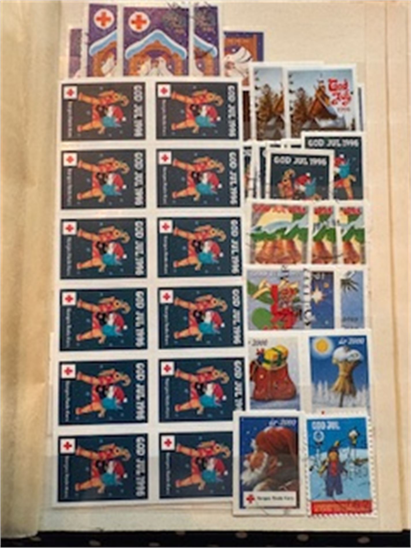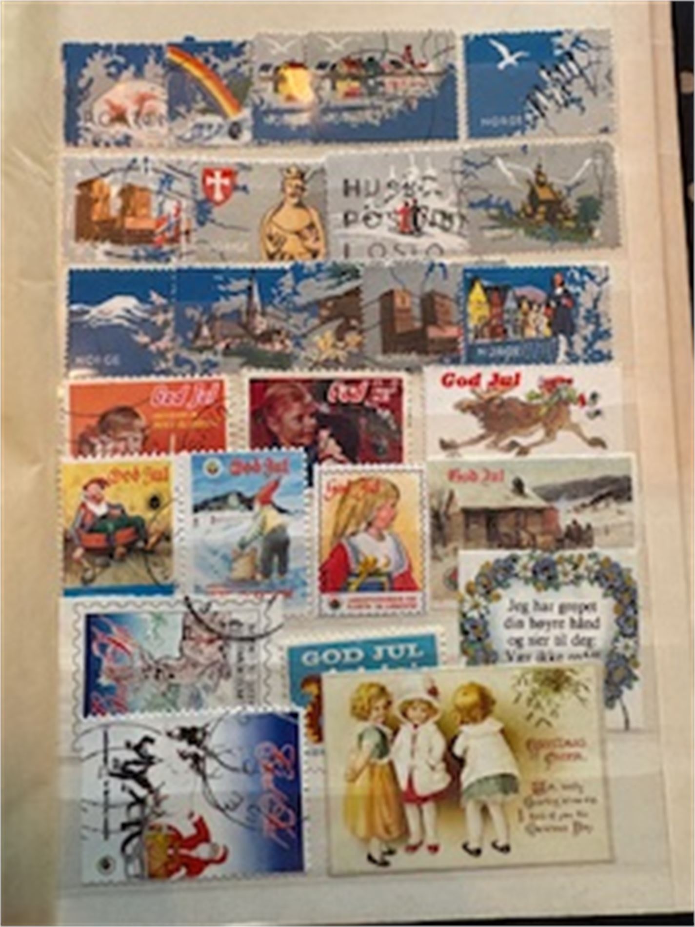 16 siders innstikksbok fylt opp med danske julemerker. Ikke alle sider er avbildet.