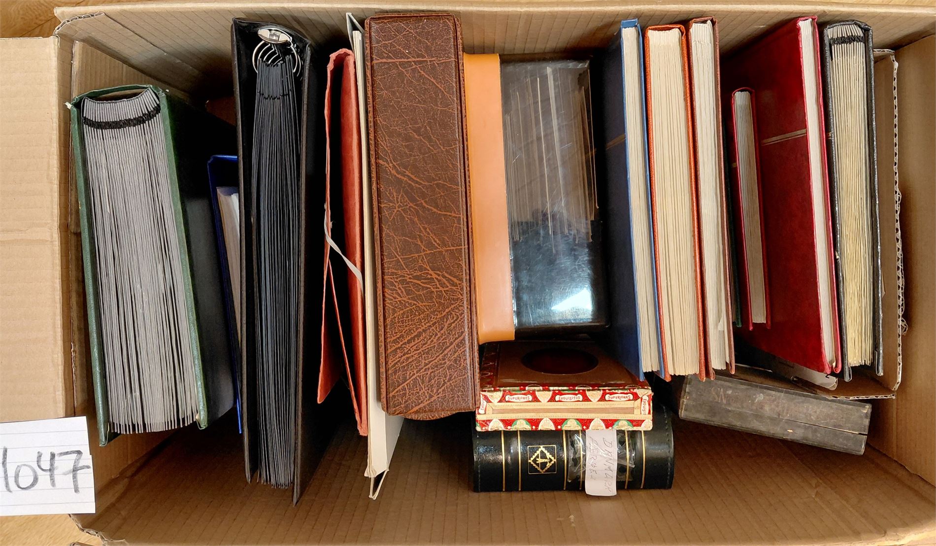 Masse merker i permer, mapper og eske. Full flyttekasse, vekt 16 kilo