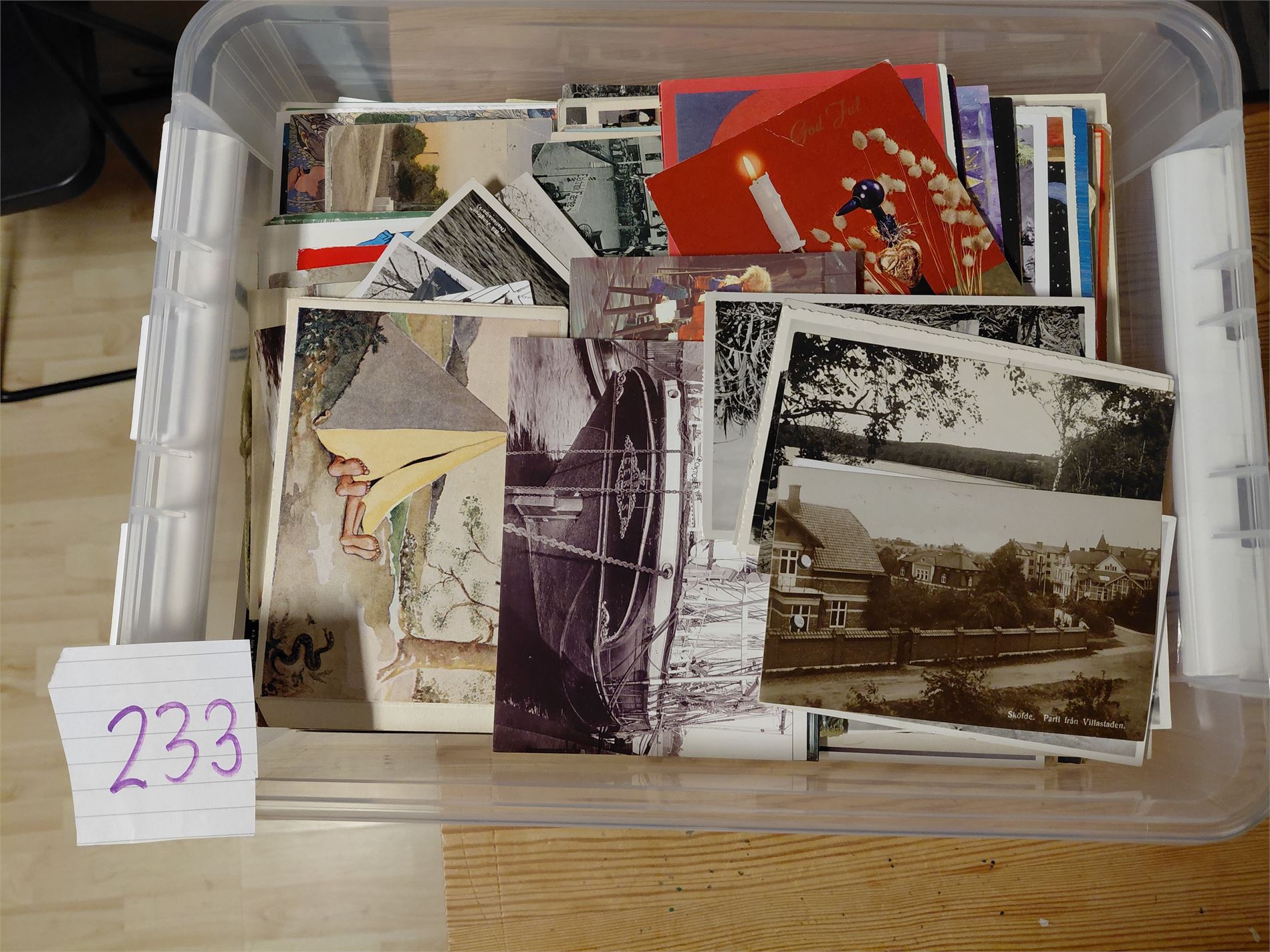 POSTKORT Stappfull plastkasse, gammelt og nyere. Ikke sjekket av oss, vekt 6,9 kilo