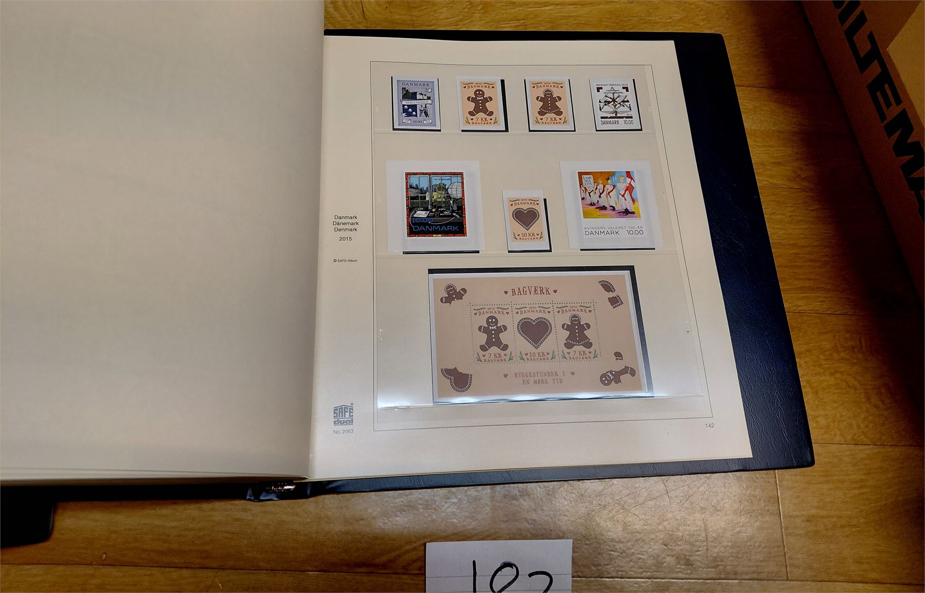 DANMARK Samling i 4 Safe Dual album til 2015. Alt det dyre mangler, verdien ligger i meget fyldig postfriskt 2003-15 og album. Vekt 17,3 kilo