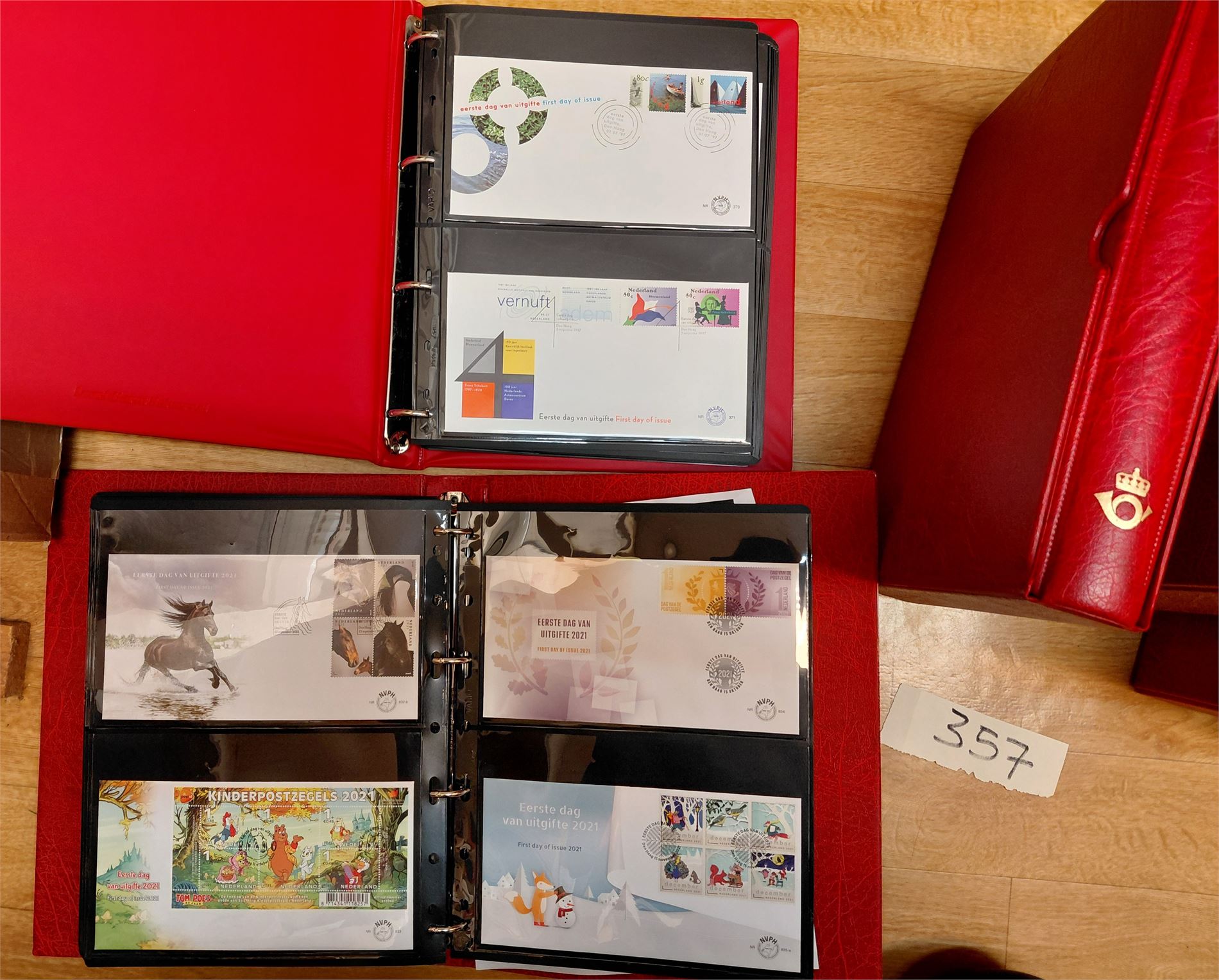 NEDERLAND-FDC 1997-2021 I 6 permer med kassetter. Vi antar at dette er fra abonnement, men vet ikke om det er komplett. Vekt 15,5 kilo