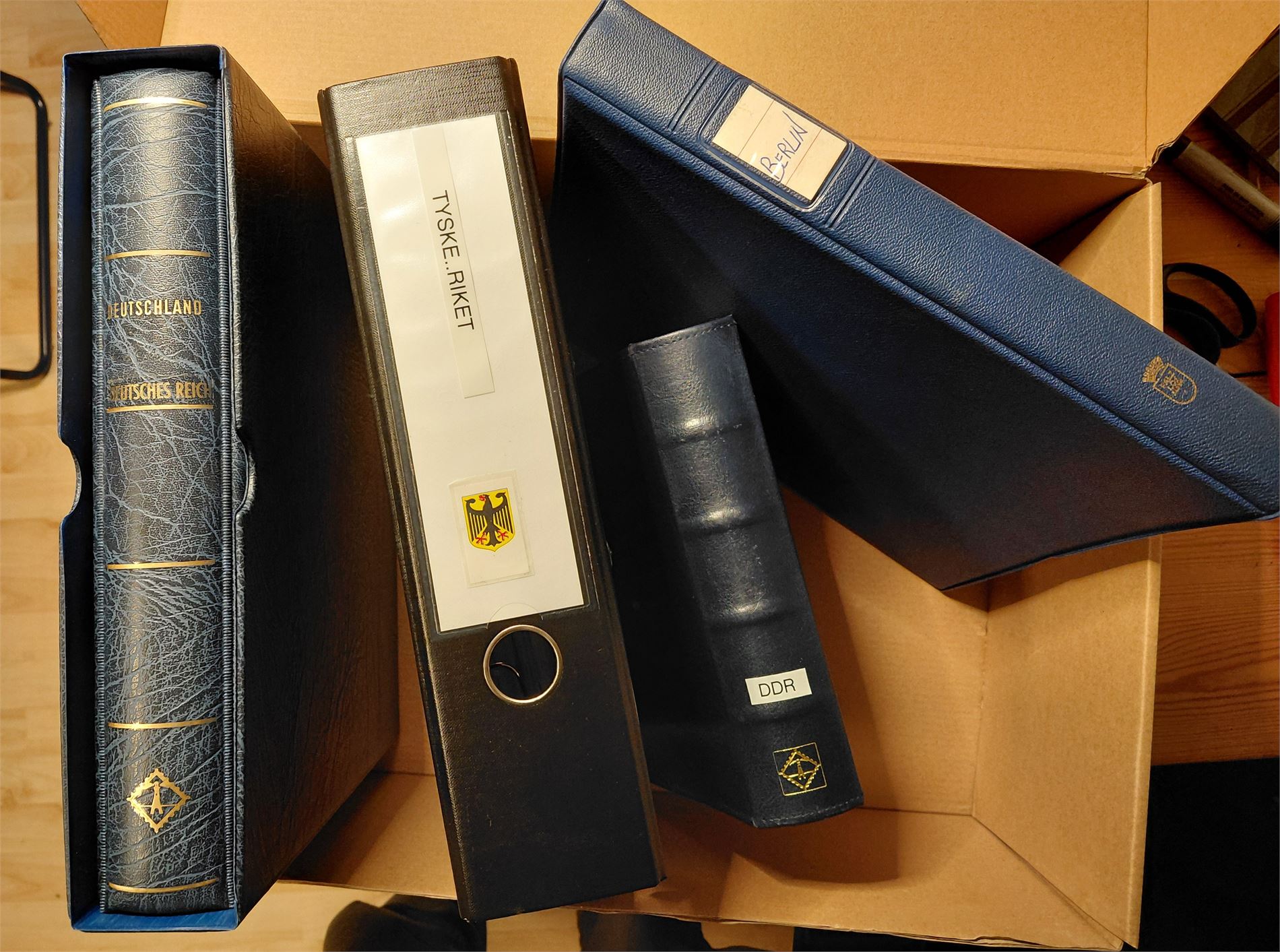 TYSKLAND x/o samling Reich i LT album med kassett, pyntet med bilder fra Hitler-perioden, samling Berlin i Lindner album til 1972 + noe Reich i ringperm og 4-blokker + DDR. Vekt 8,6 kilo