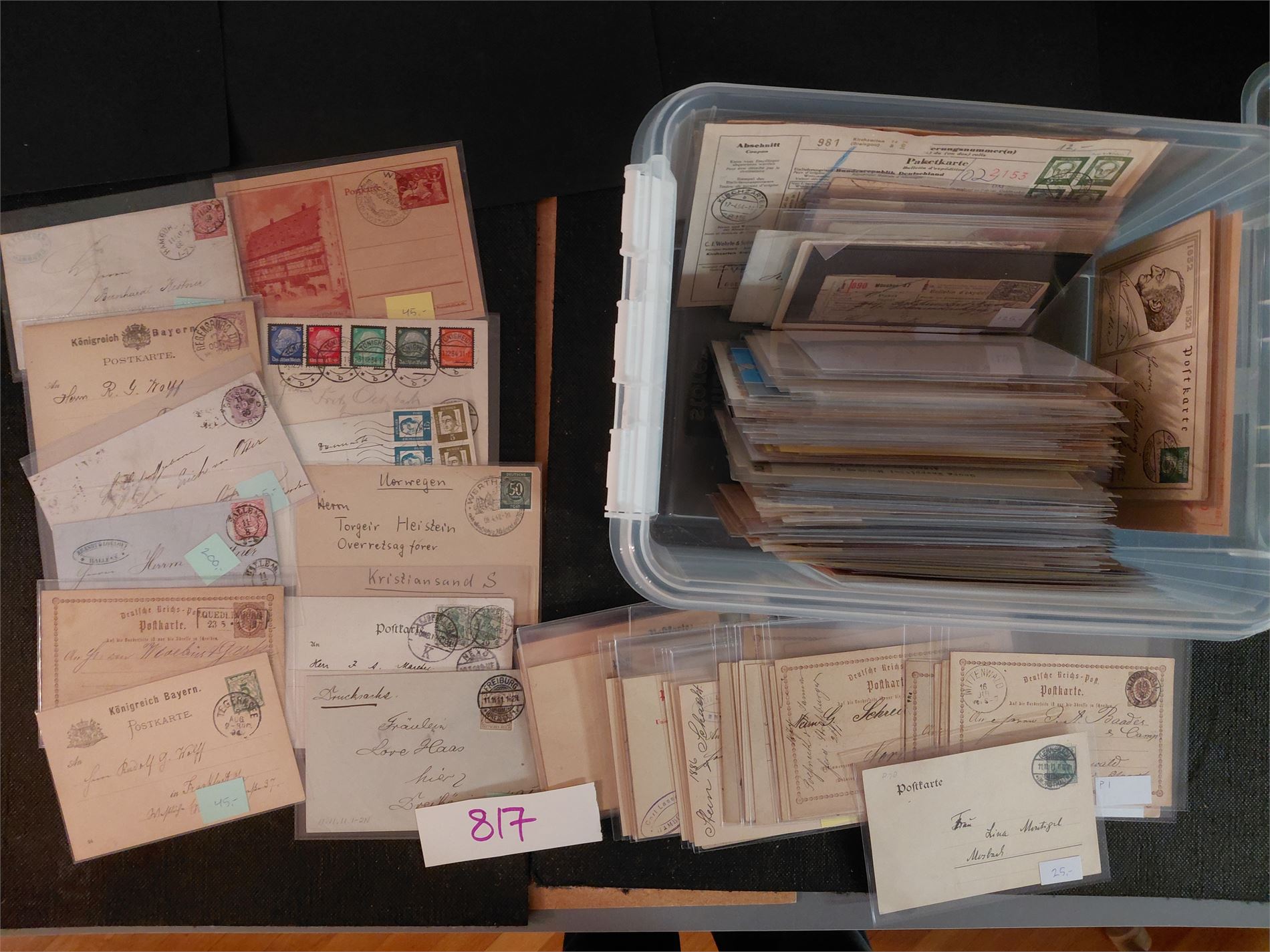 TYSKLAND-BREV OG KORT Spennende plastboks med noen hundre enheter, lite etter krigen. Vekt 2,3 kilo