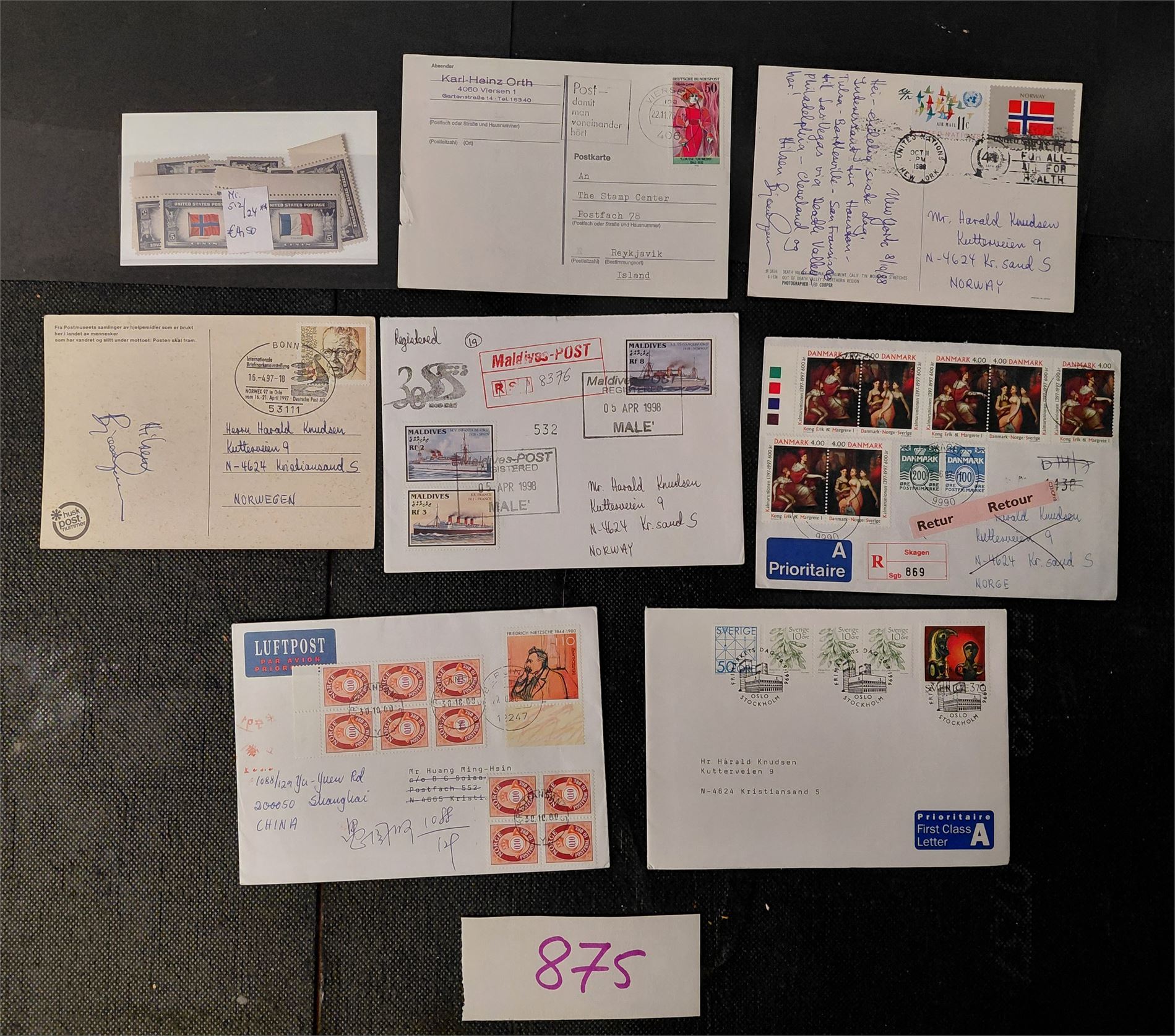 MOTIV: NORVEGIANA 7 brev/kort + USA Mi 512-24 der norsk flagg er med.