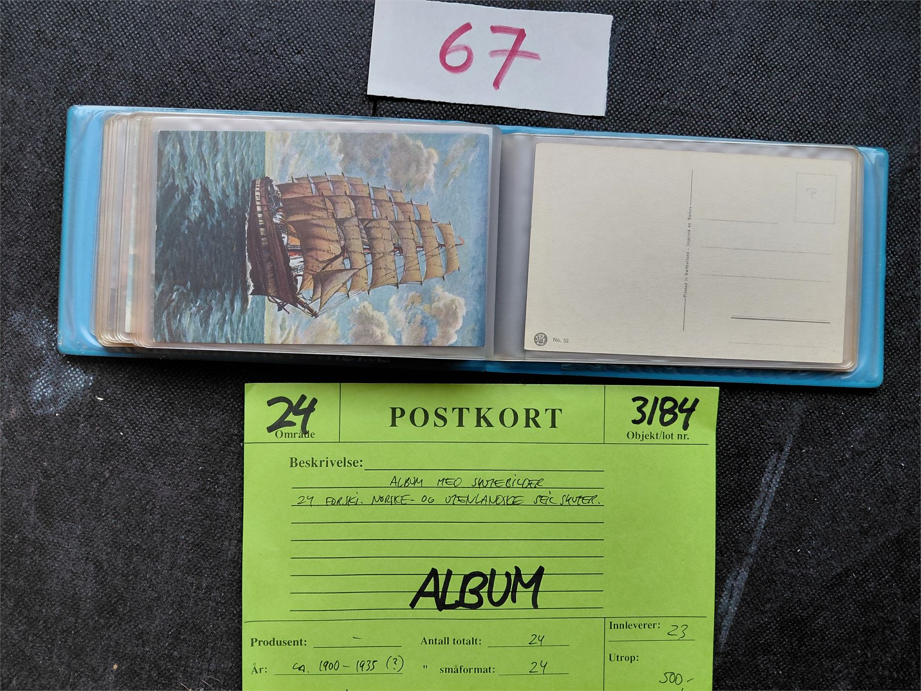 POSTKORT - SEILSKUTER Lite album med 24 kort, norske og utenlandske. De fleste ubrukte. Utrop 500 hos Ragners Frimerker en gang i tiden