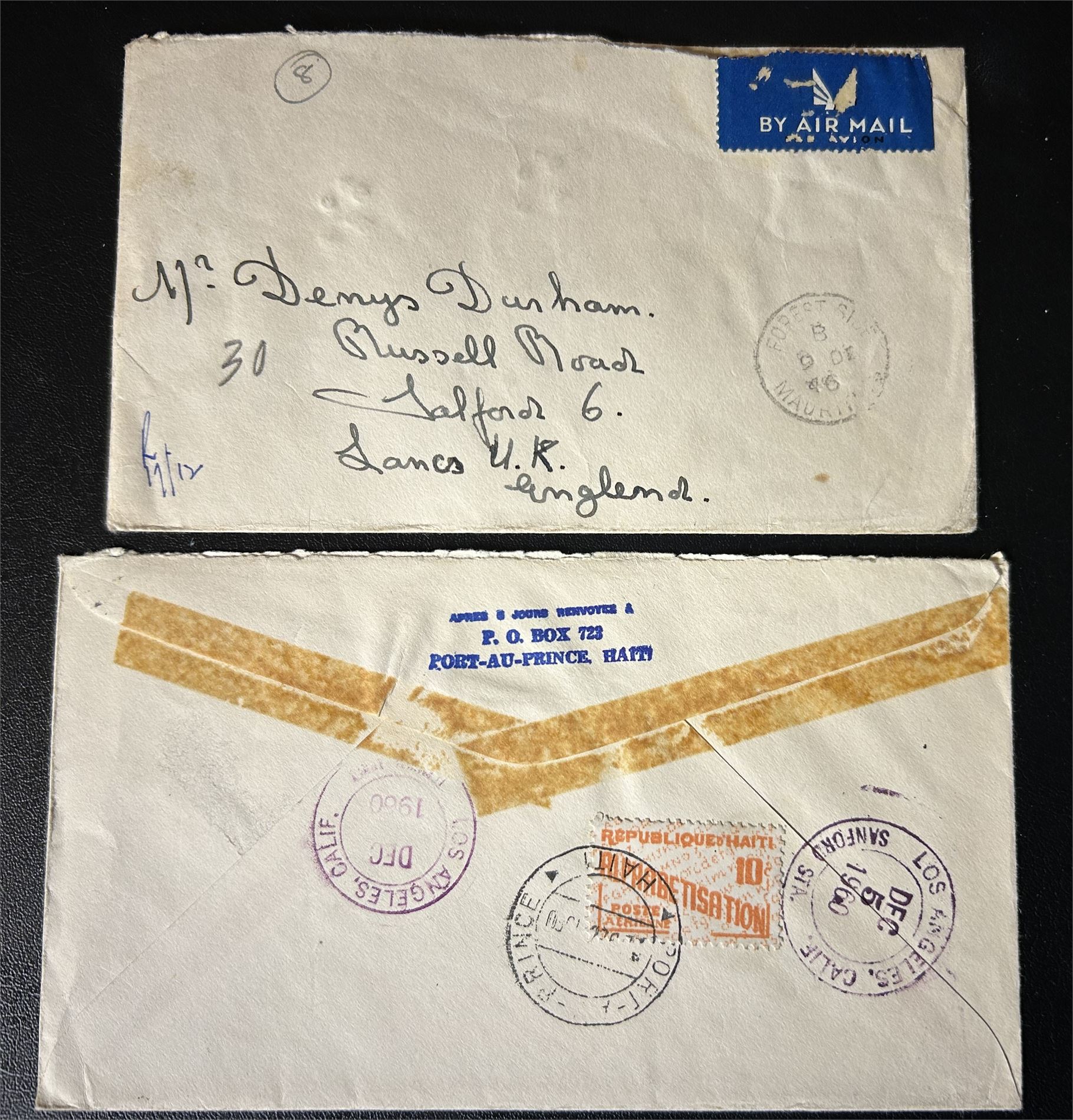 BREV FDC Haiti 1960 til USA og Mauritius 1946 til England