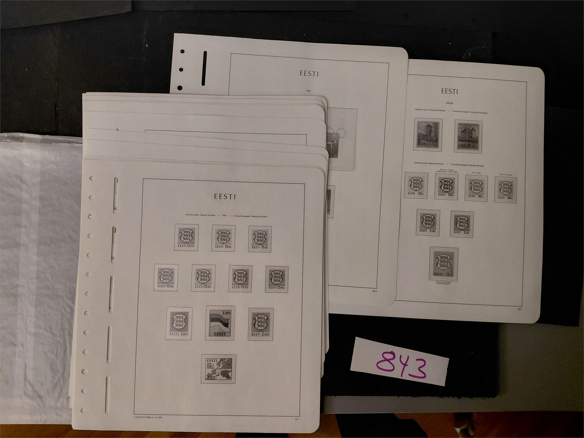 BALTIKUM-ESTLAND LT fortrykksark med lommer 1991-96, 15 ark, helt nye. GI BUD!