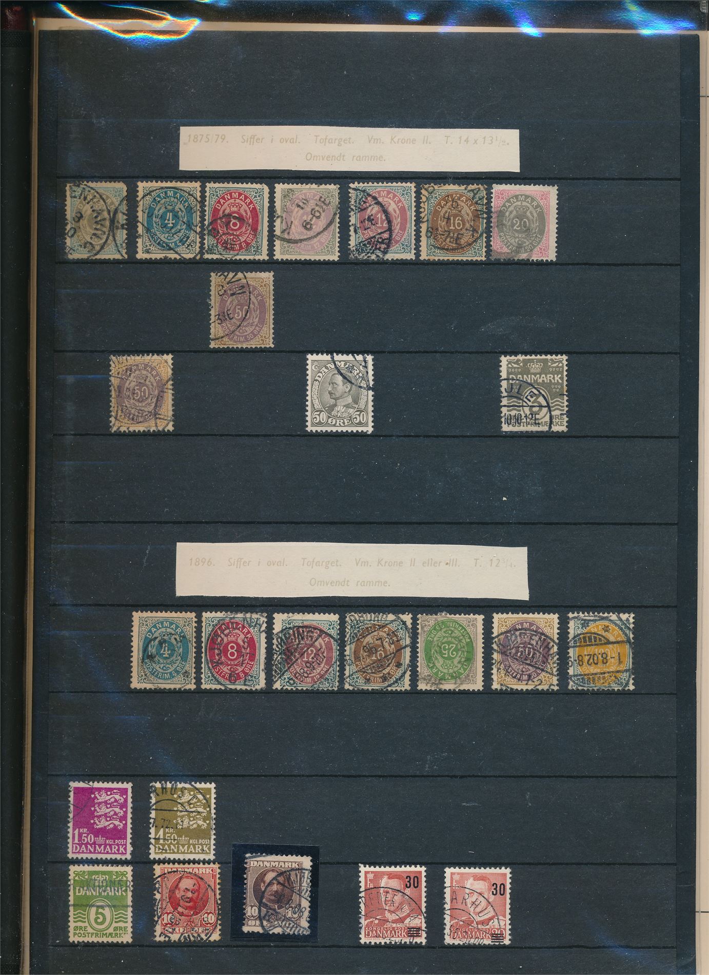 DANMARK Vesentlig stemplet samling i Schaubek fortrykk til 1981. Nr 2 har hull i merket, ellers er samlingen fyldig med 2 posthus. Vannmerker og tagginger ikke sjekket. Også noe GRØNLAND bak inkl Thule-serien (5825630)