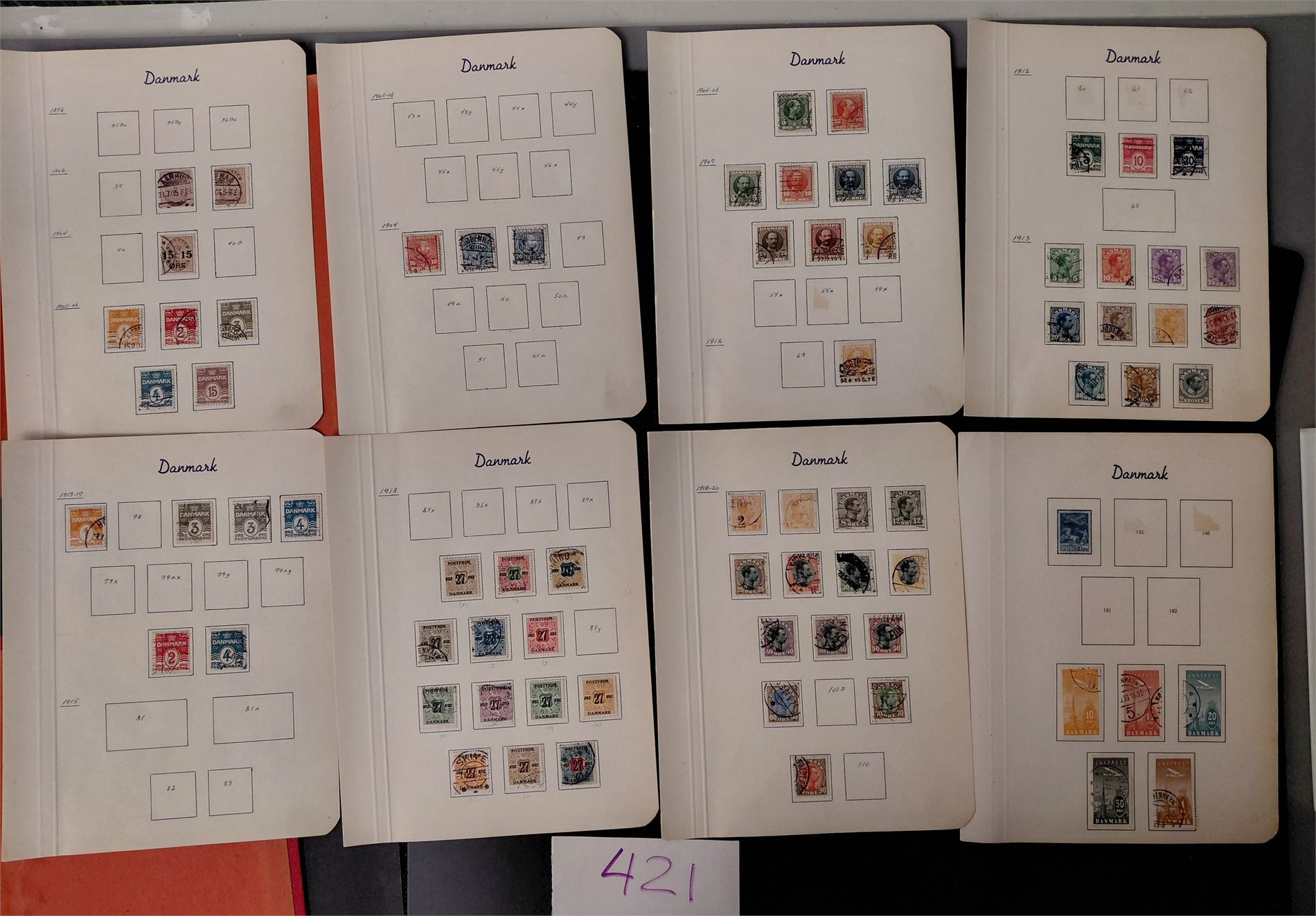 DANMARK o/x vesentlig brukt samling til 1964. Oppgitt verdi for bedre merker ca € 1200 for bedre merker/serier