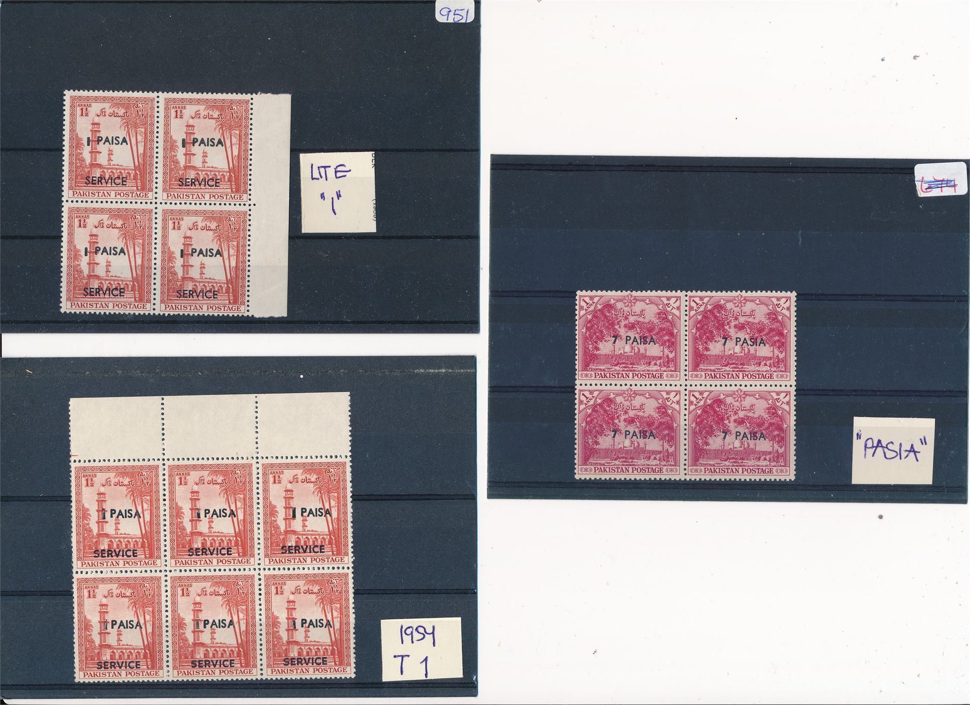 PAKISTAN xx 50-talls bruksmerker i enheter. Et med variant "PASIA"