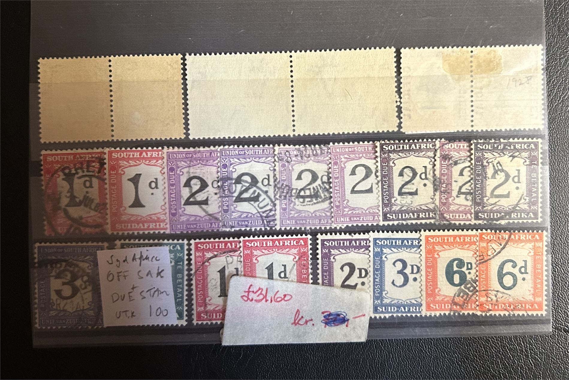SOUTH AFRICA o plansje tjeneste- og portomerker inkl 3 par