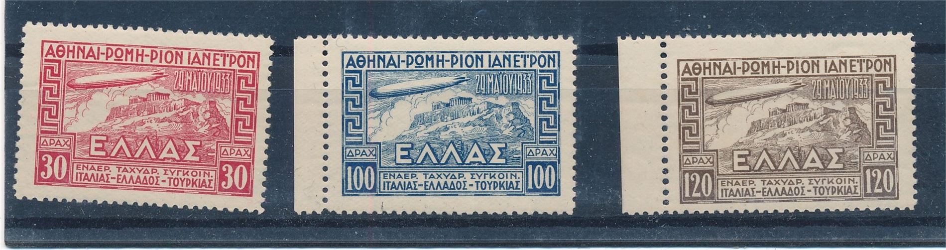 HELLAS xx Mi 352-54, 1933 Zeppelin komplett serie (€ 380)
