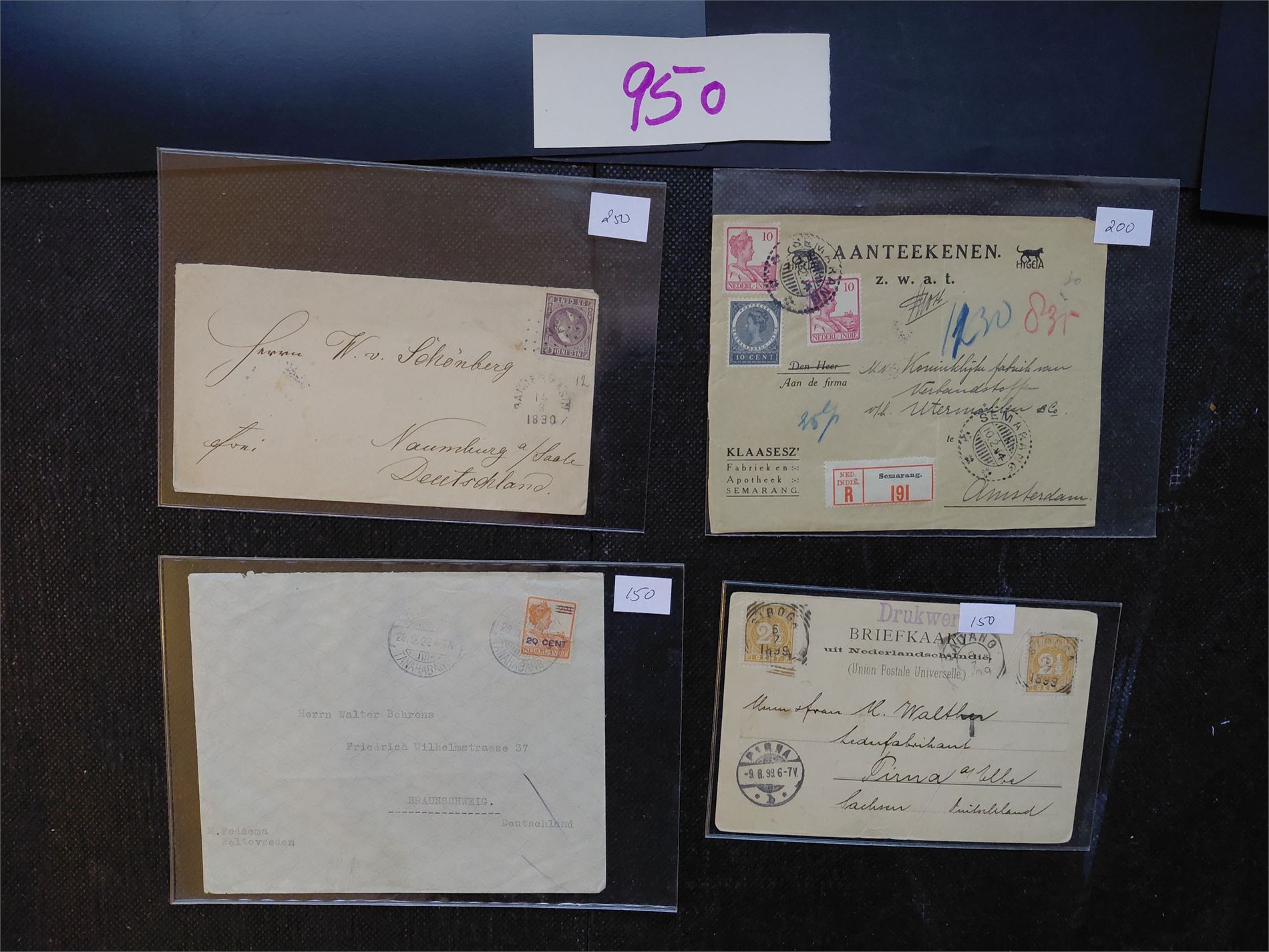 NEDERLANDSK INDIA 4 pene brev/kort, 3 til Tyskland