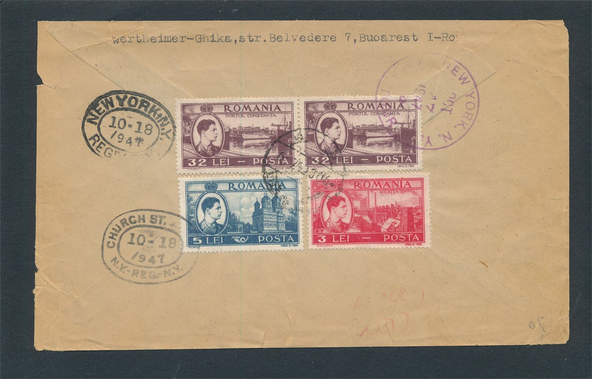 ROMANIA Rekbrev stemplet "BUKURESTI 9 OCT 47" til New York ankomststemplet "18.10.1947"