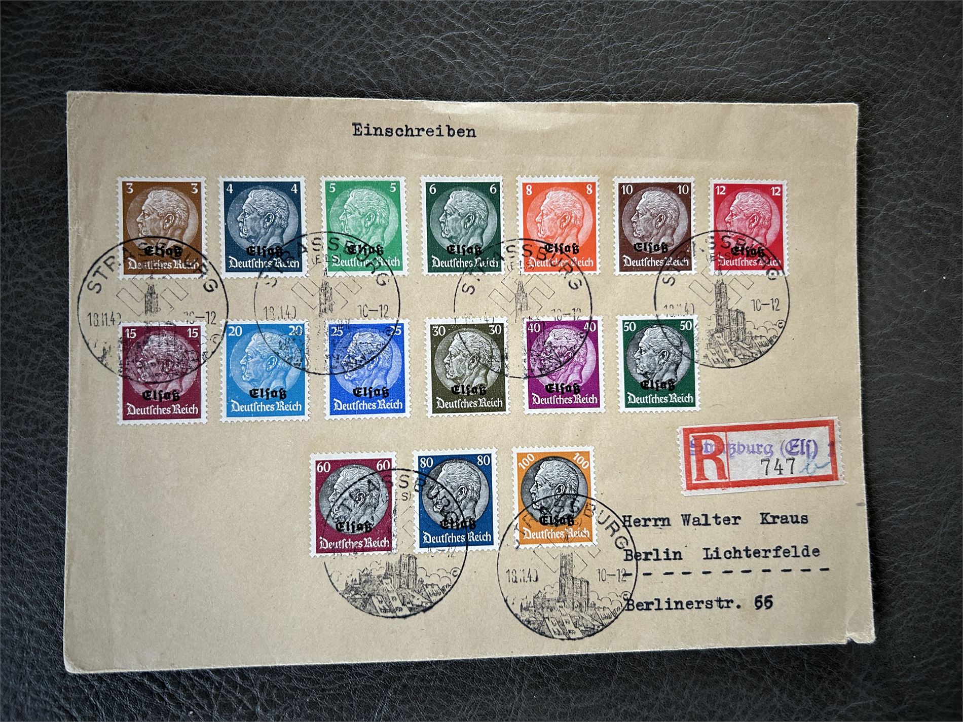 ELSASS Rekbrev med komplett serie stemplet "STRASSBURG18.11.40"
