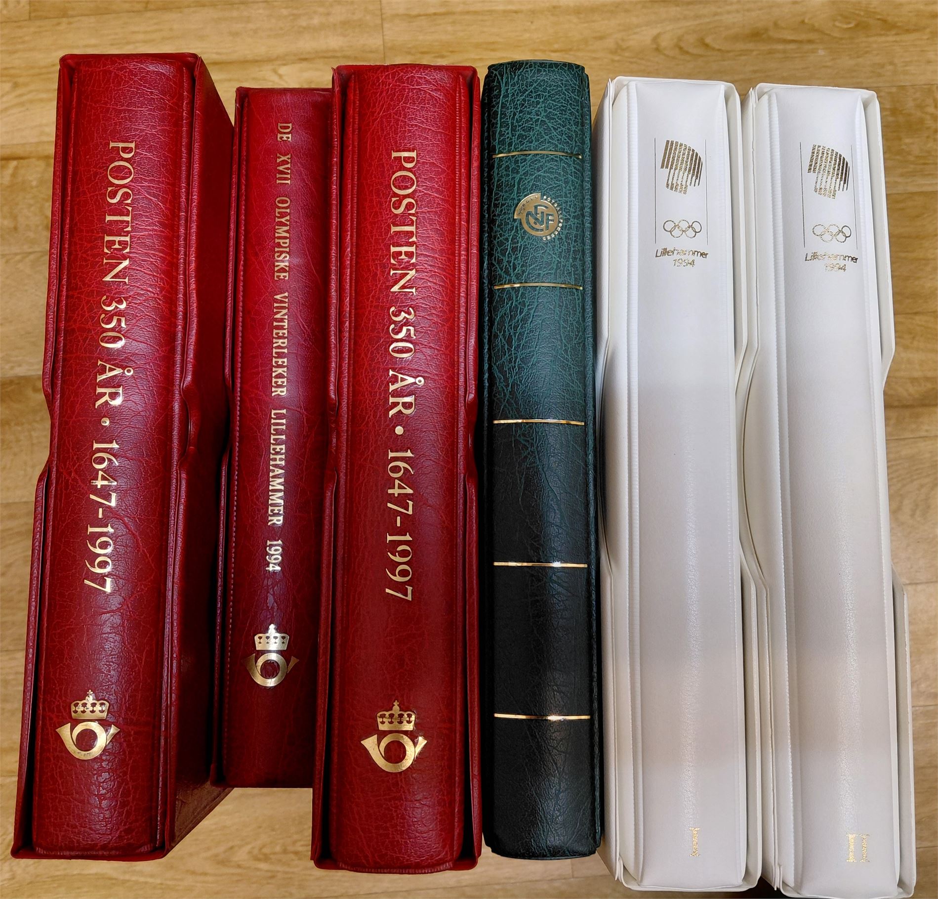Samlinger fra LOOC, Posten og Samlerhuset. Den ene permen med Posten 1647-1997 er tom. Vekt 12,7 kilo