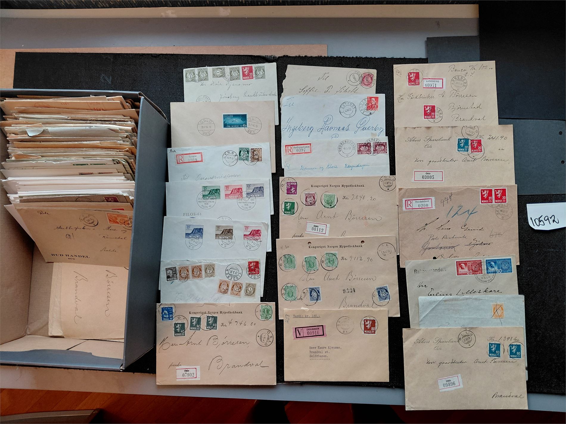 6. I tillegg til salgssummen kommer 10 % salær + omkostninger ved pakking, spedisjon, forsikring, porto etc. Auksjonen benytter Posten/Bring ved sending. Skal objektene sendes, vent med betaling til porto er lagt til. På brevforsendelser frankeres med frimerker som legges i plastlomme utenpå sendingene.