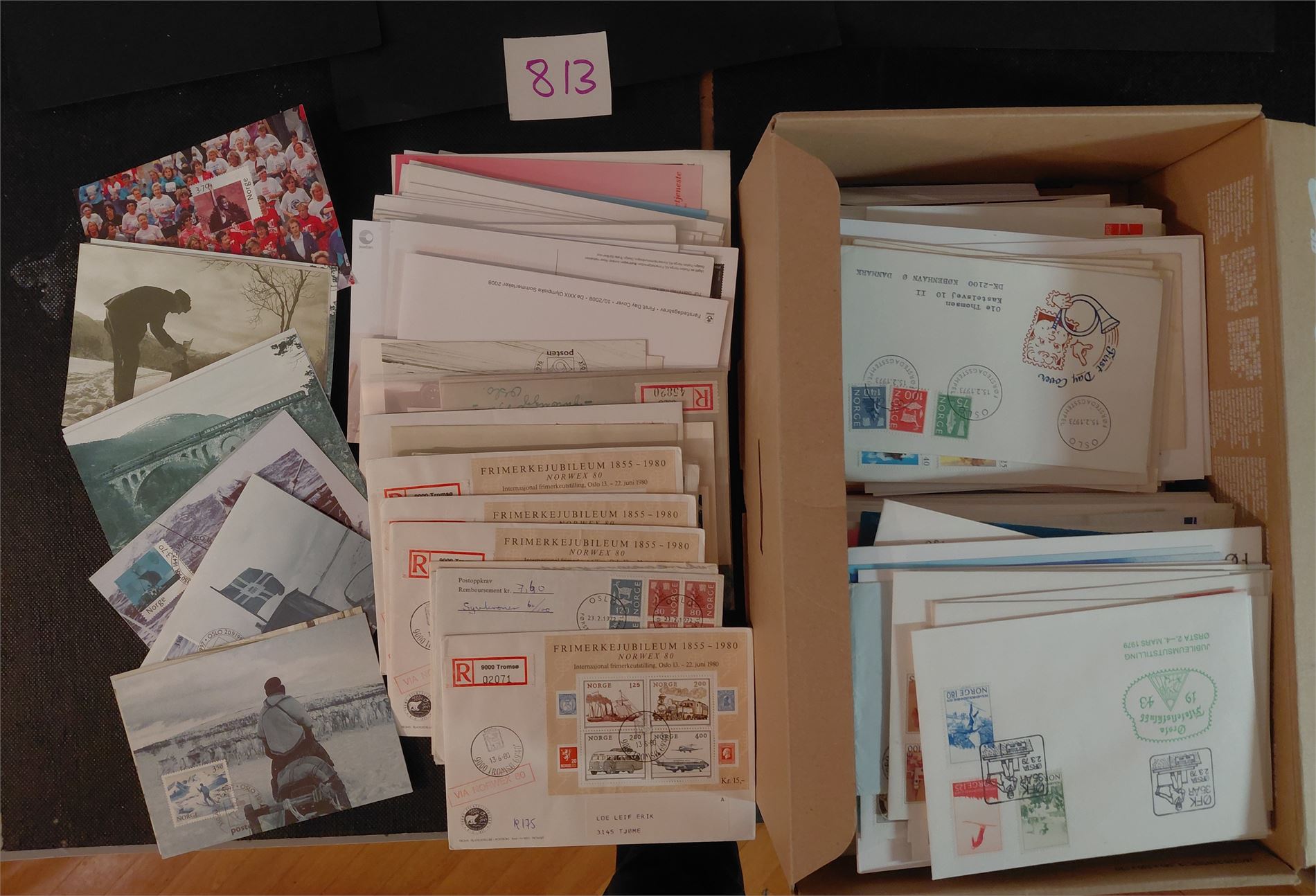 FDC, MAXIKORT, SPESIALSTEMPLER + Diverse i full skoeske. Ikke sjekket, vekt 3,5 kilo