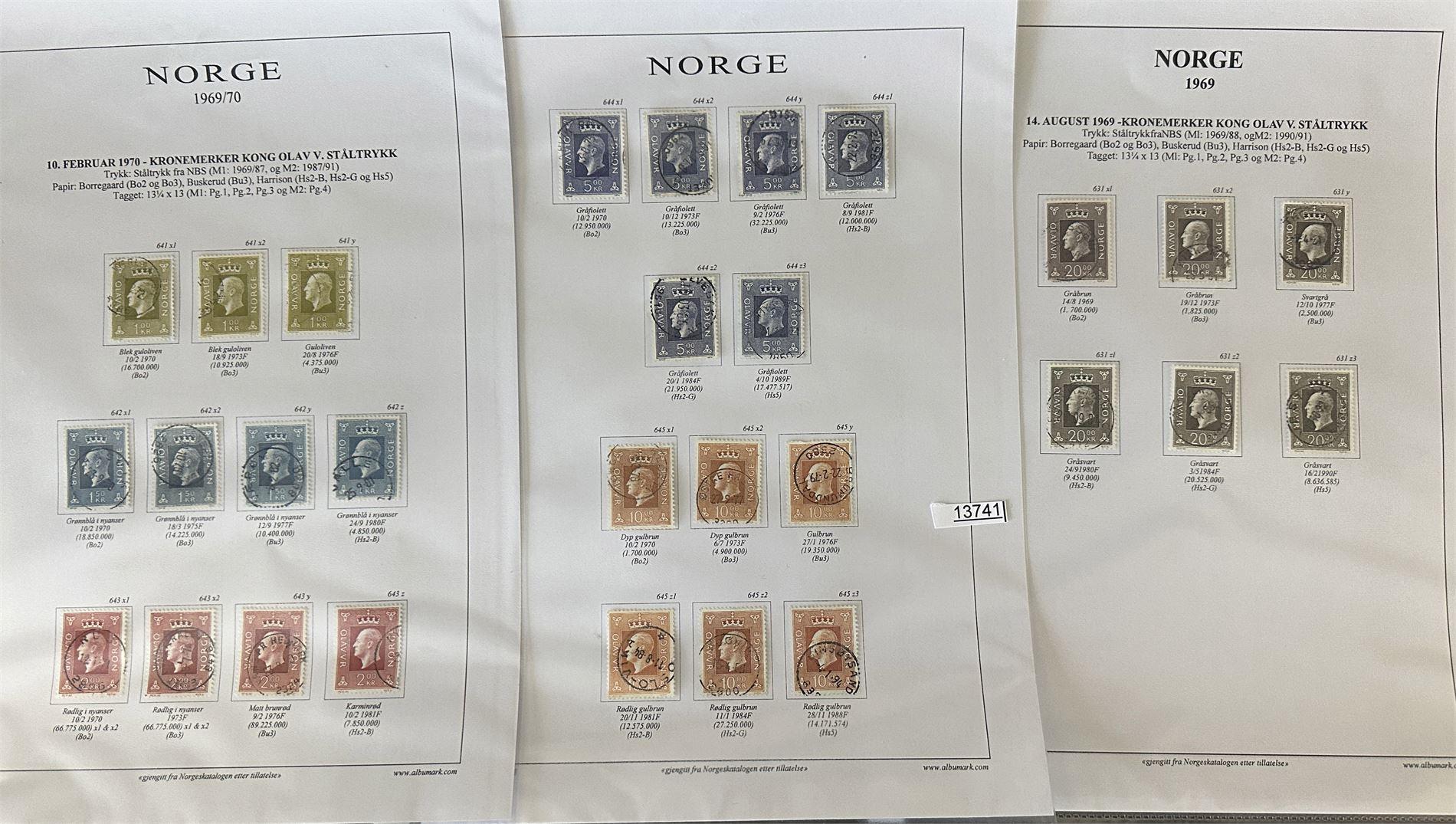 Nk 641-45 o. Ulike papirtyper oppsatt av spesialist. Stempler penere enn normalen