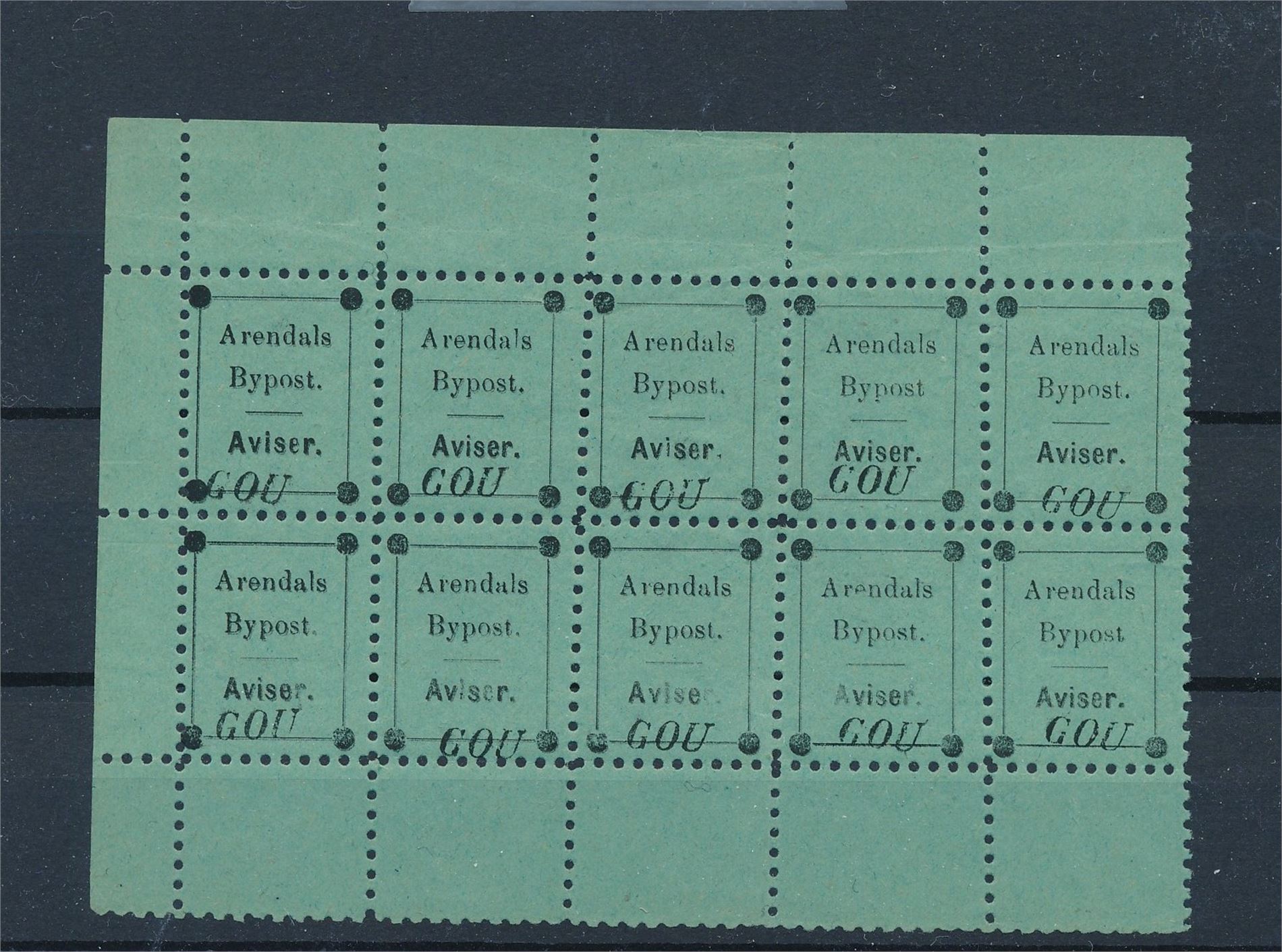 BYPOST ARENDAL 11, avisporto i postfrisk 10-blokk