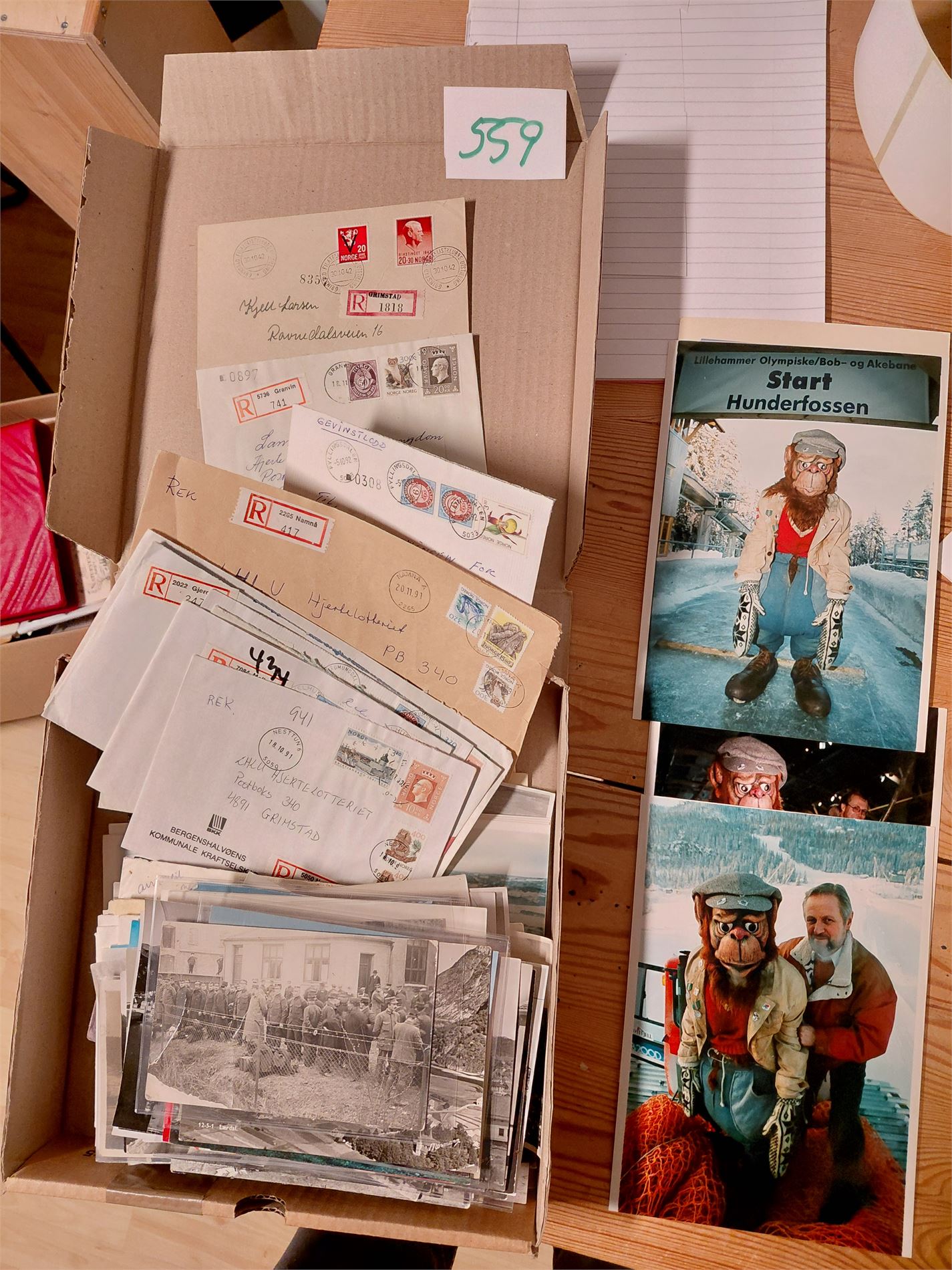 Diverse kort og brev i eske. Noen fotografier.