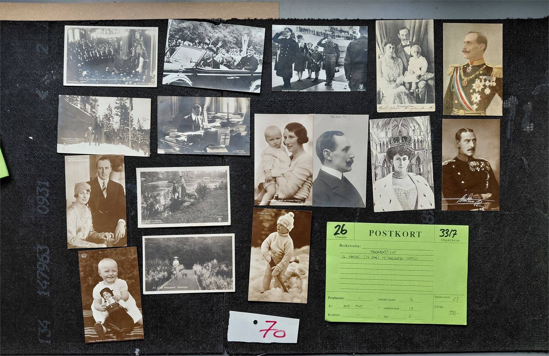KONGEKORT 27 forskjellige (et par er nytrykk). Utrop 1050 kroner hos Ragners Frimerker en gang i tiden