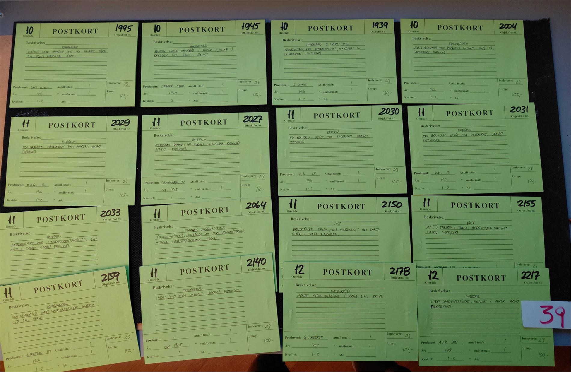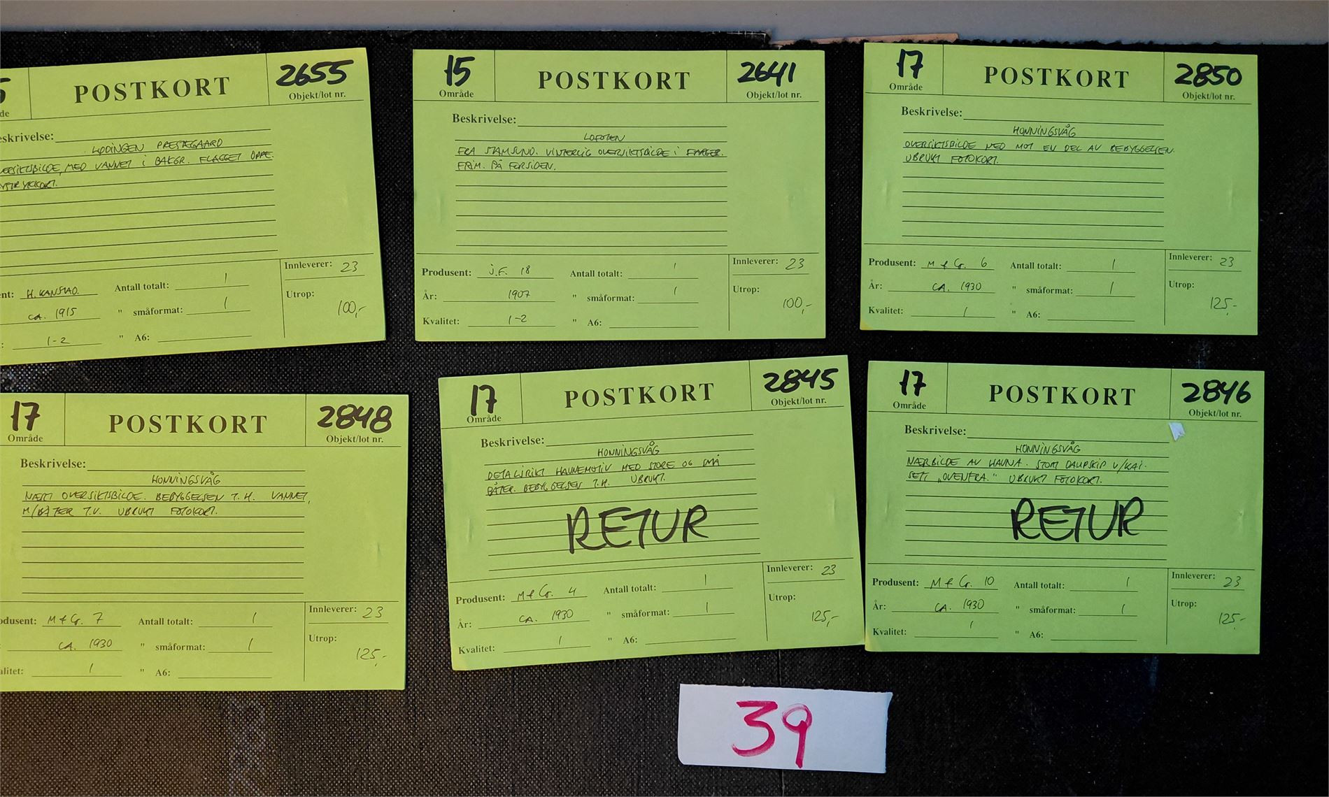 40 enkeltkort fra Ragners Frimerker, antagelig usolgte objekter fra samme innleverer. Omfatter Rogaland til Finnmark. Kun stedskort. Gammelt utrop 3975 kroner