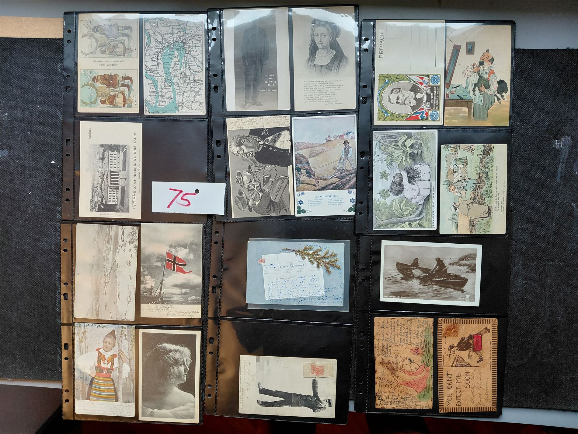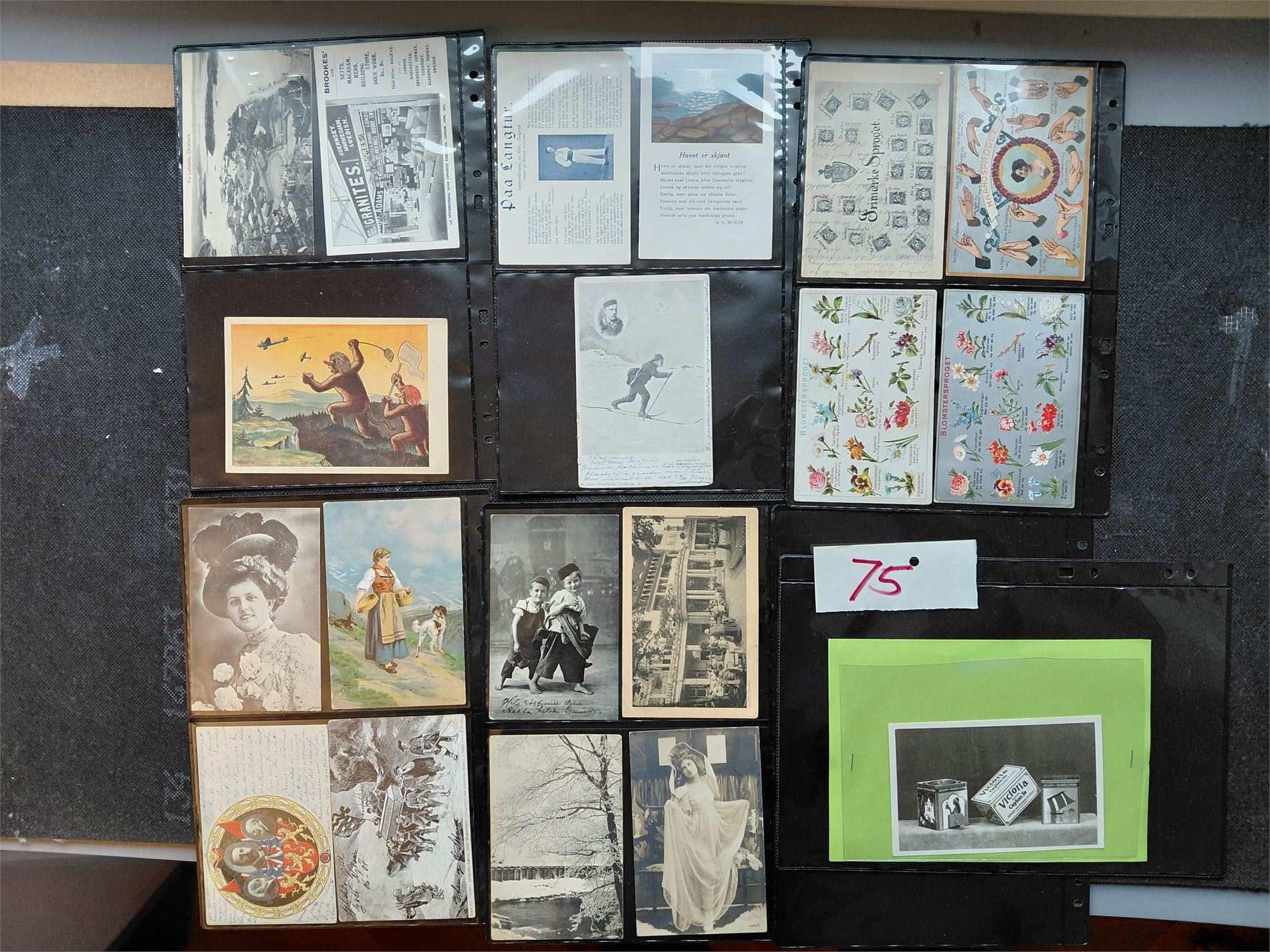 6. I tillegg til salgssummen kommer 10 % salær + omkostninger ved pakking, spedisjon, forsikring, porto etc. Auksjonen benytter Posten/Bring ved sending. Skal objektene sendes, vent med betaling til porto er lagt til. På brevforsendelser frankeres med frimerker som legges i plastlomme utenpå sendingene.