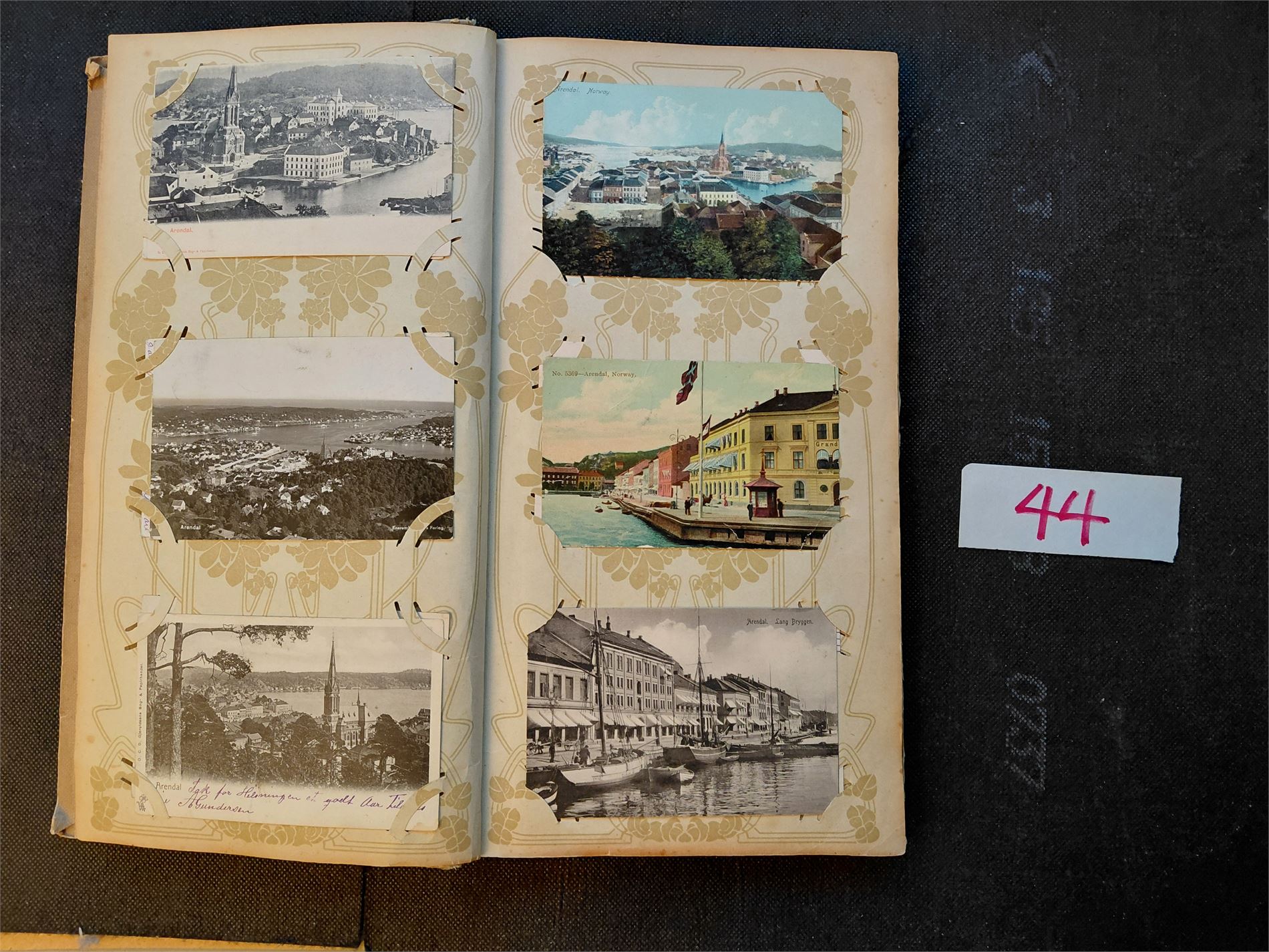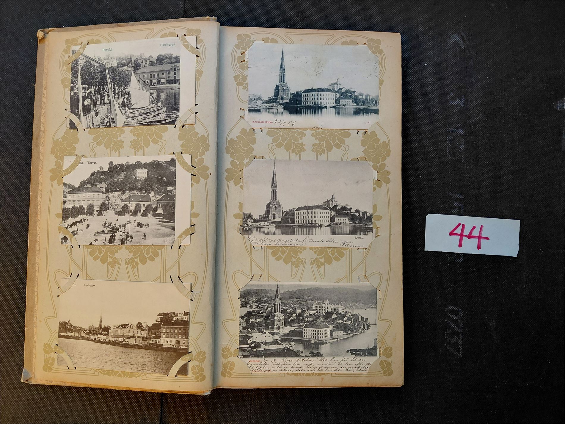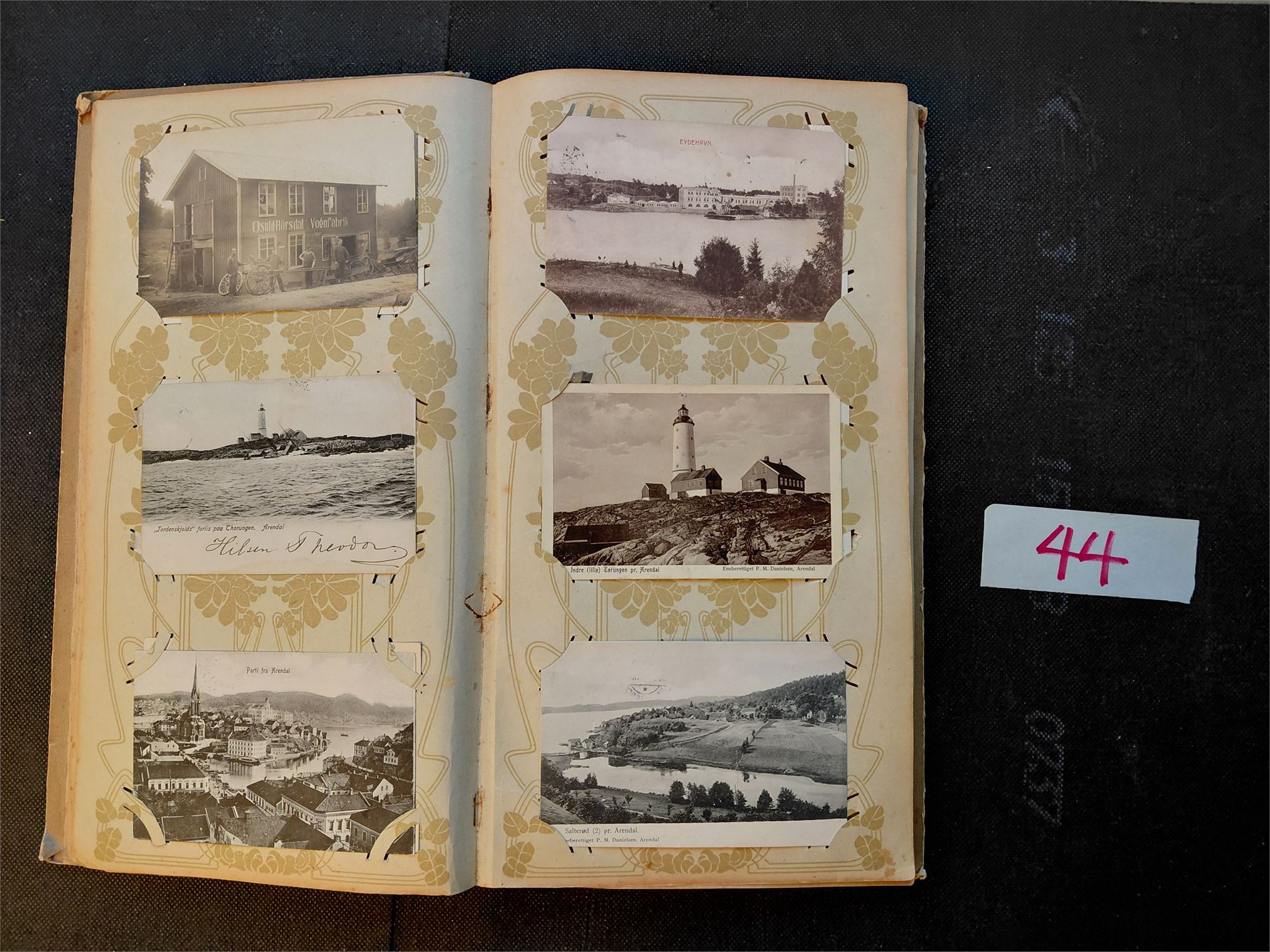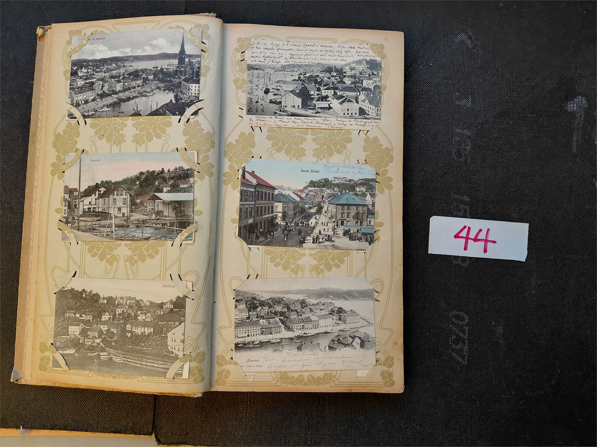 AUST-AGDER Gammelt brevkort album med 131 forskjellige kort, derav 47 fra Arendal. En flott samling. Baksider er IKKE SJEKKET!