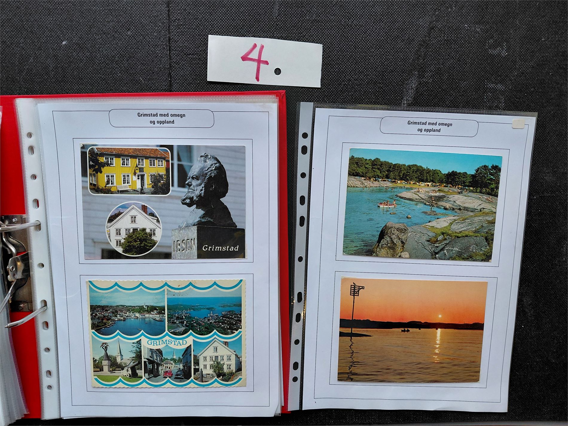 GRIMSTAD Ringperm med 86 forskjellige storformat fargekort. De fleste ubrukte og i topp kvalitet