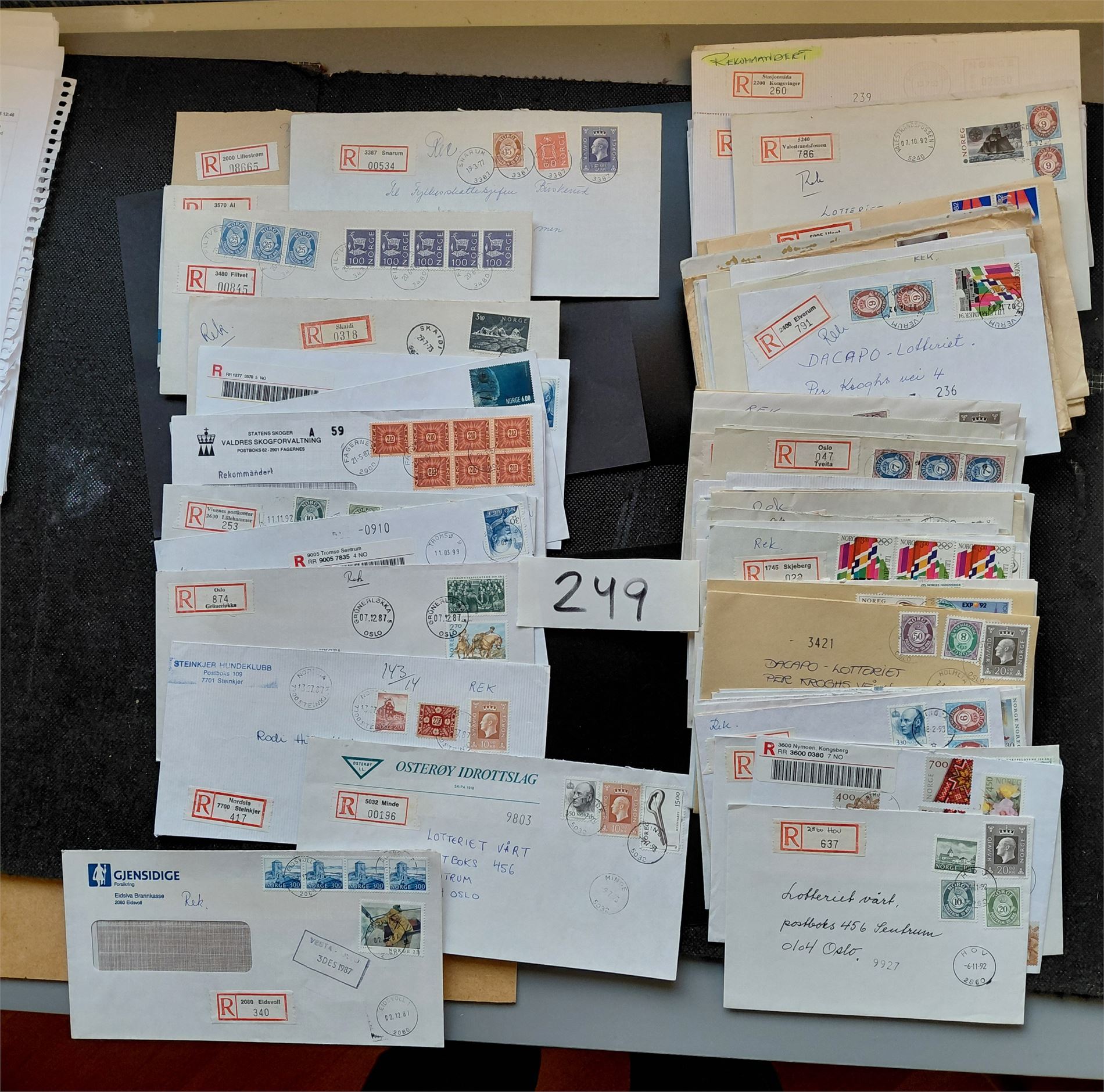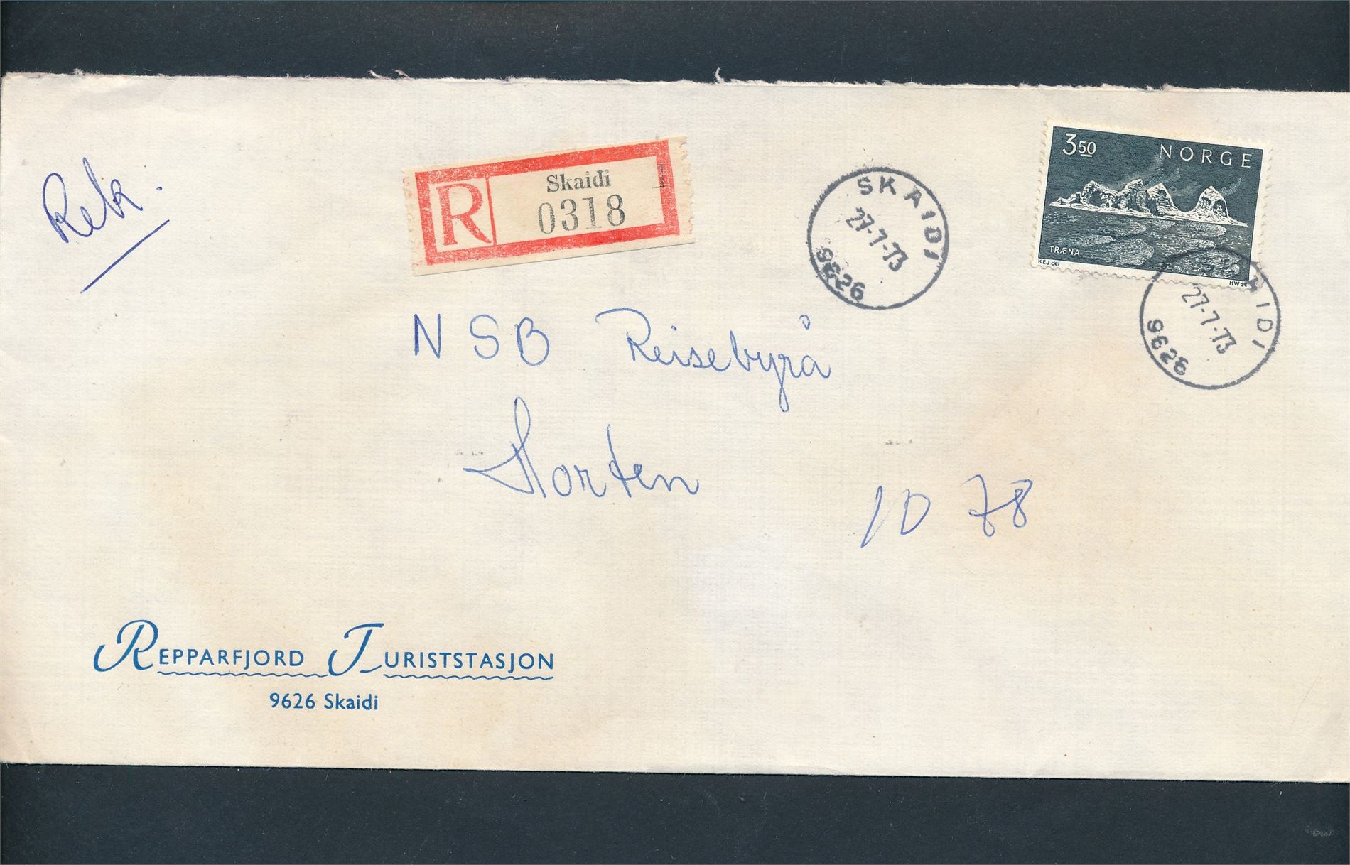 REKBREV 130 rekbrev ca 1930-2013 inkl pent "SKAIDI 27-7-73". Mange konvolutter format C6/C5