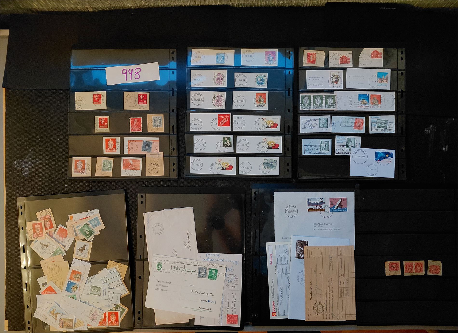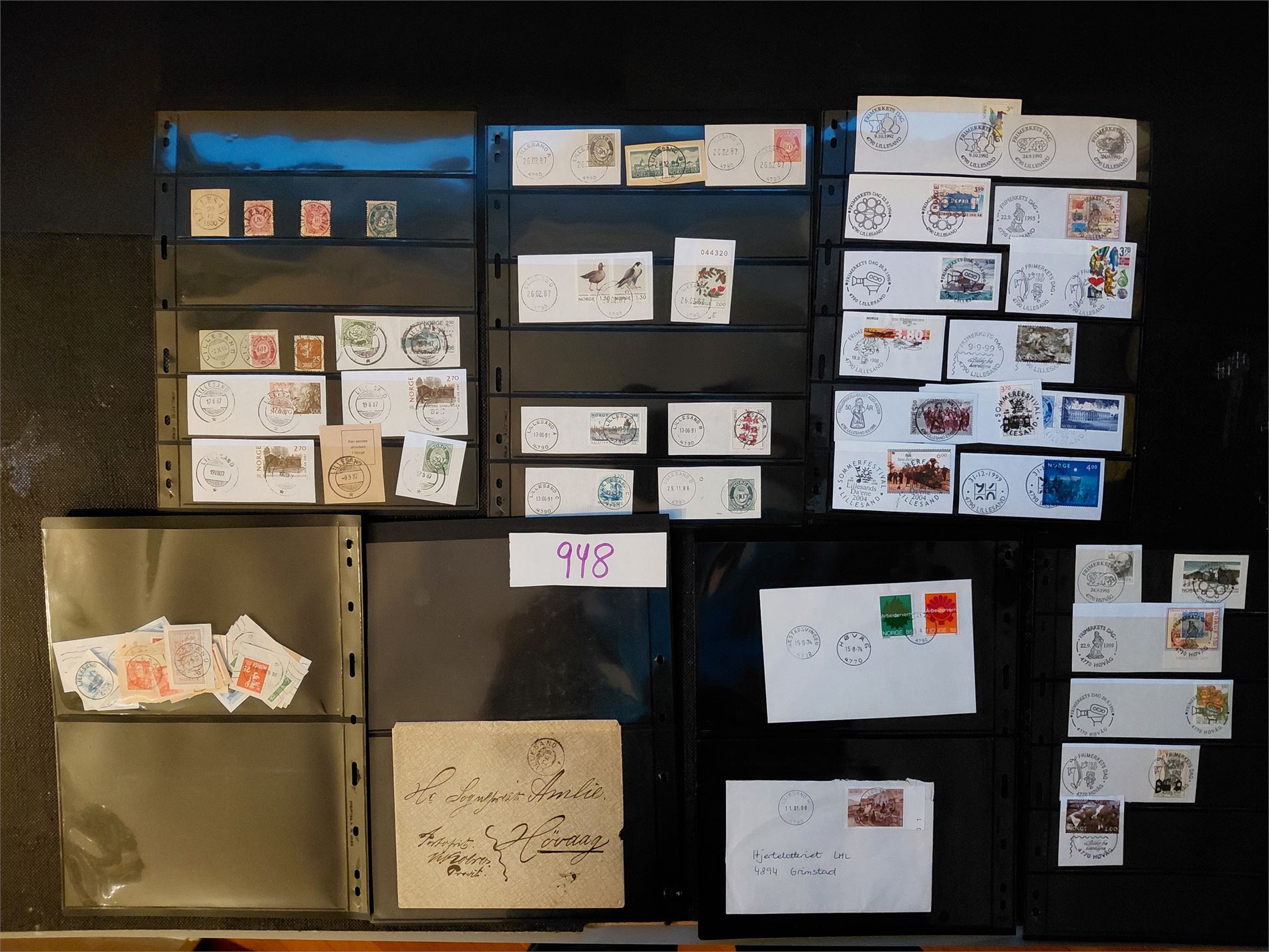 Plansjer med merker, klipp og noen brev, alle fra Lillesand kommune. HER ER MYE!