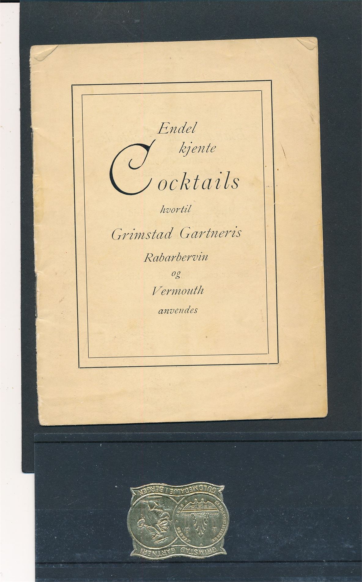 GRIMSTAD GARTNERI Brevoblat i gullfarge fra ca 1930 + reklamebrosjyre