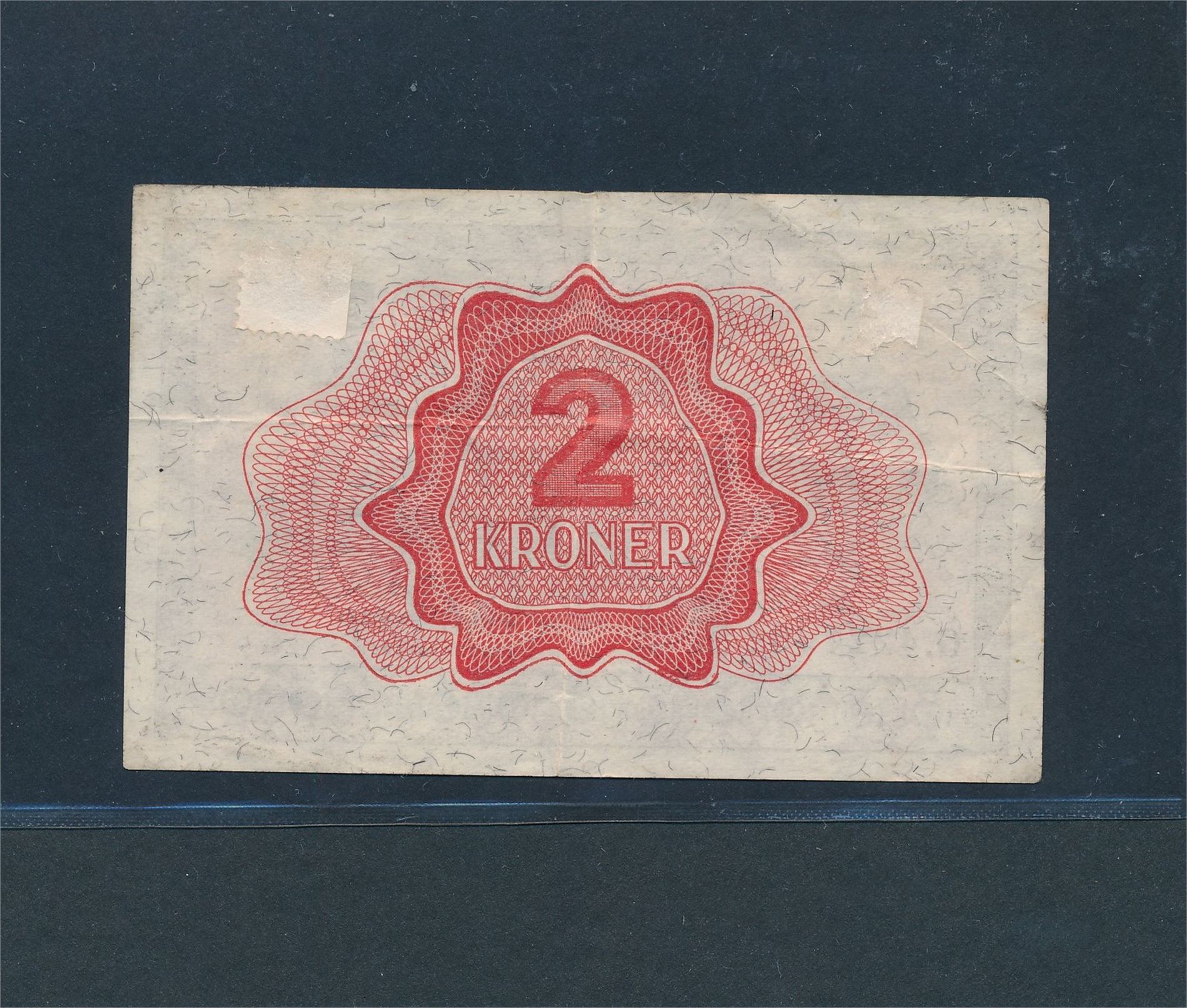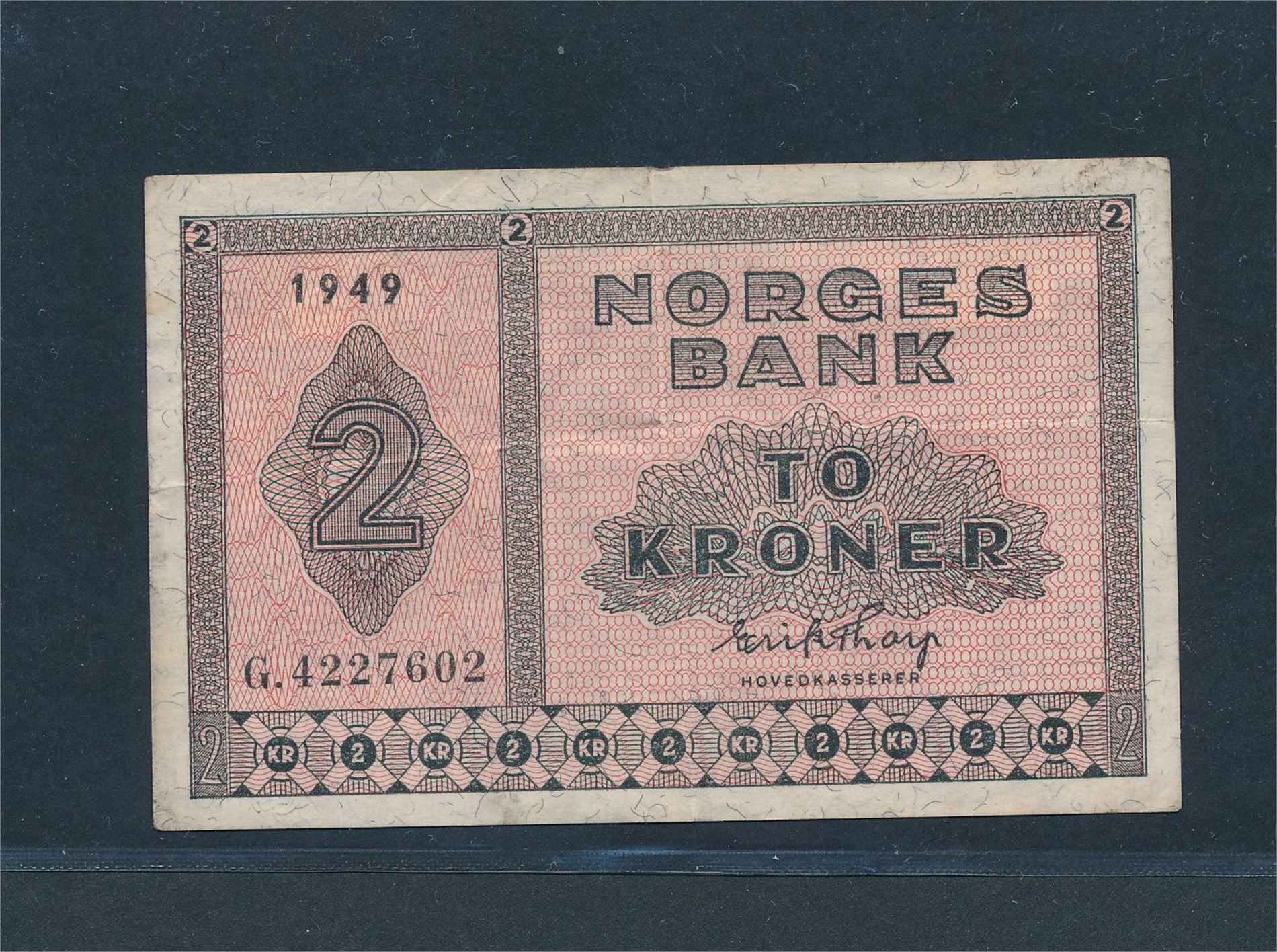 PENGESEDDEL 2 kroner 1949, brukt med synlige bretter