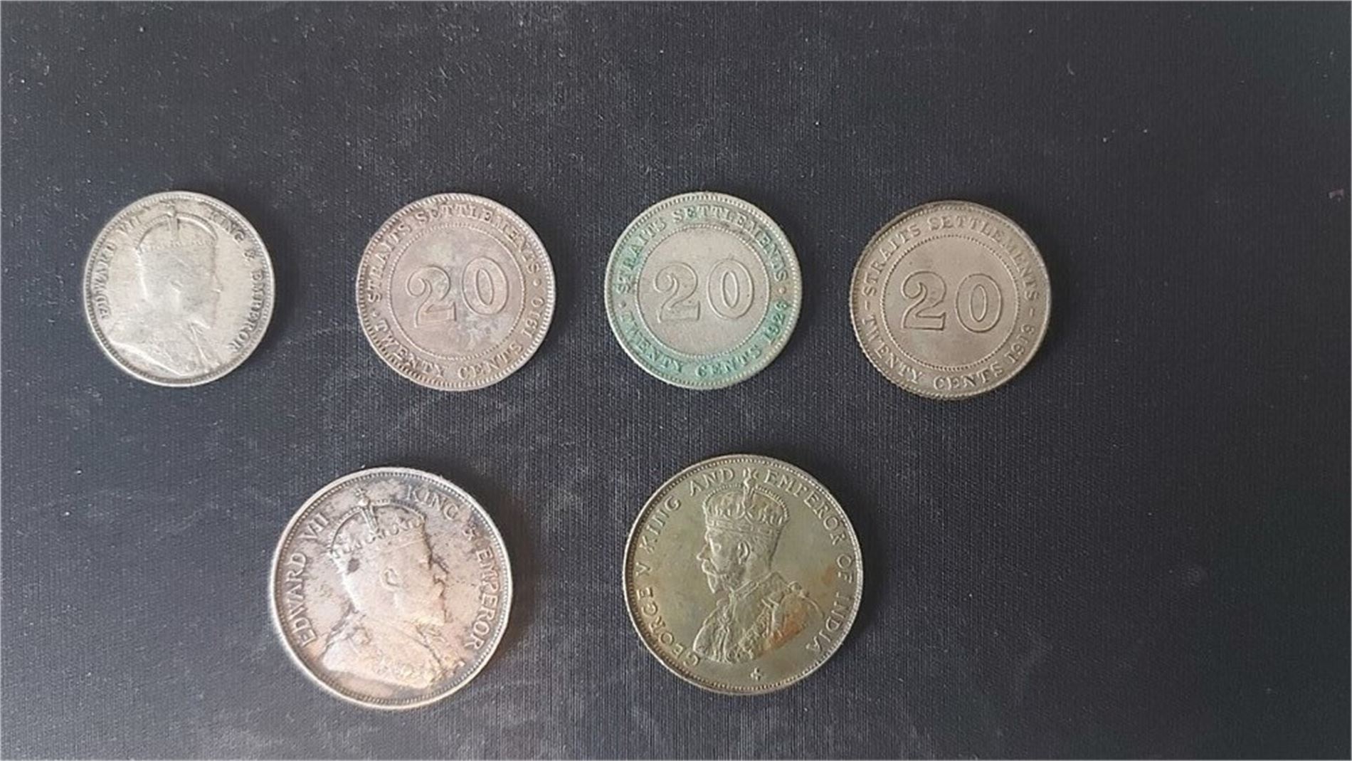 STRAITS SETTLEMENTS EDWARD VII lot fem silvermynt