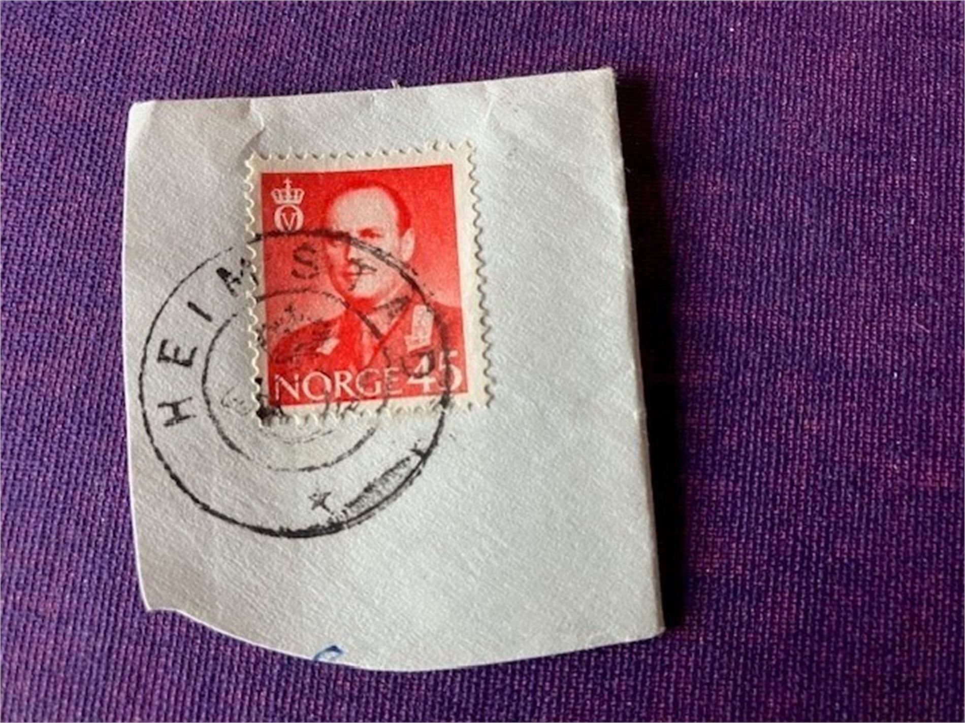 Klipp med stmpl. Kronet Posthorn Heimstad
