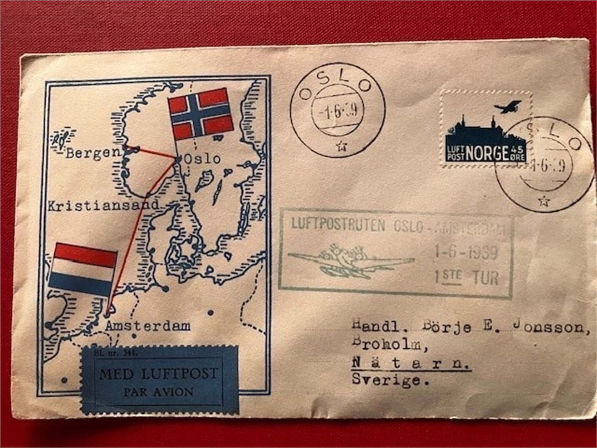 Luftpost Oslo - Amsterdam 1. tur 1. juni 1939