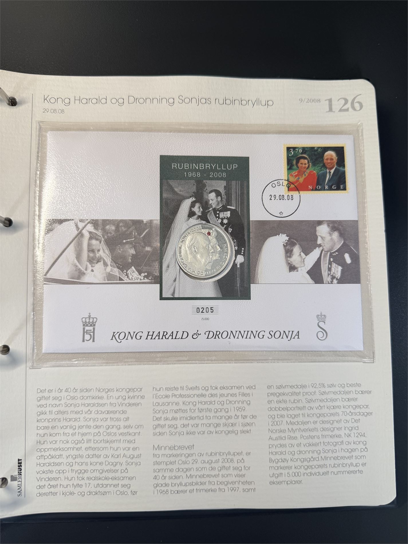 Nr 126 Kong Harald og Dronning Sonjas Rubinbryllup med ekte Rubin